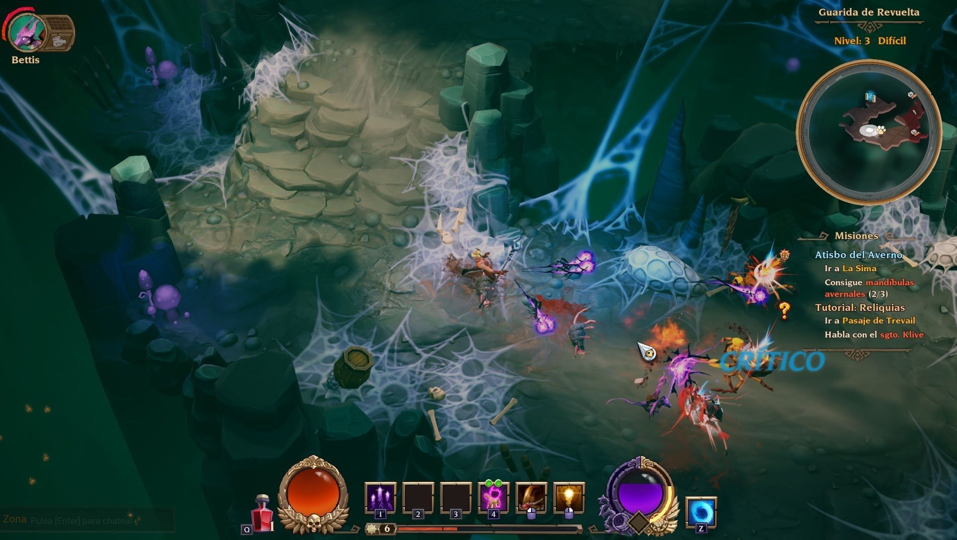 Un aspecto que sí nos ha gustado en cuanto a la progresión de nuestro personaje y las habilidades es que tenemos libertad total para colocarlas en la tecla que queramos, pudiendo distribuirlas con sin problemas entre el botón izquierdo o derecho del ratón así como entre los botones del 1 al 4 (también podemos cambiar estas teclas si queremos) algo que estamos seguros de que gustará a los más puristas y exigentes con el género. Otro aspecto interesante son las habilidades de movilidad que permiten mejorar la agilidad del personaje y, por ejemplo, teletransportarse en alguna dirección, algo que será útil para esquivar los ataques enemigos o avanzar más rápido.