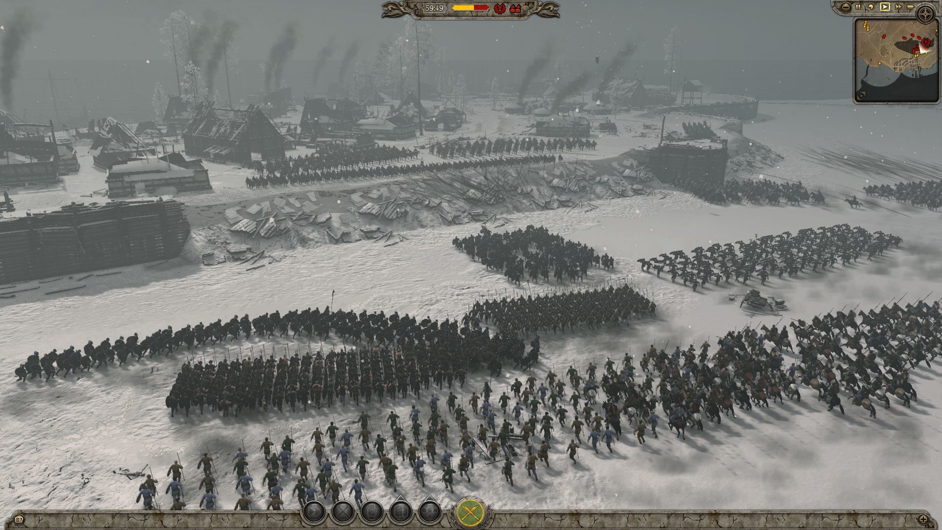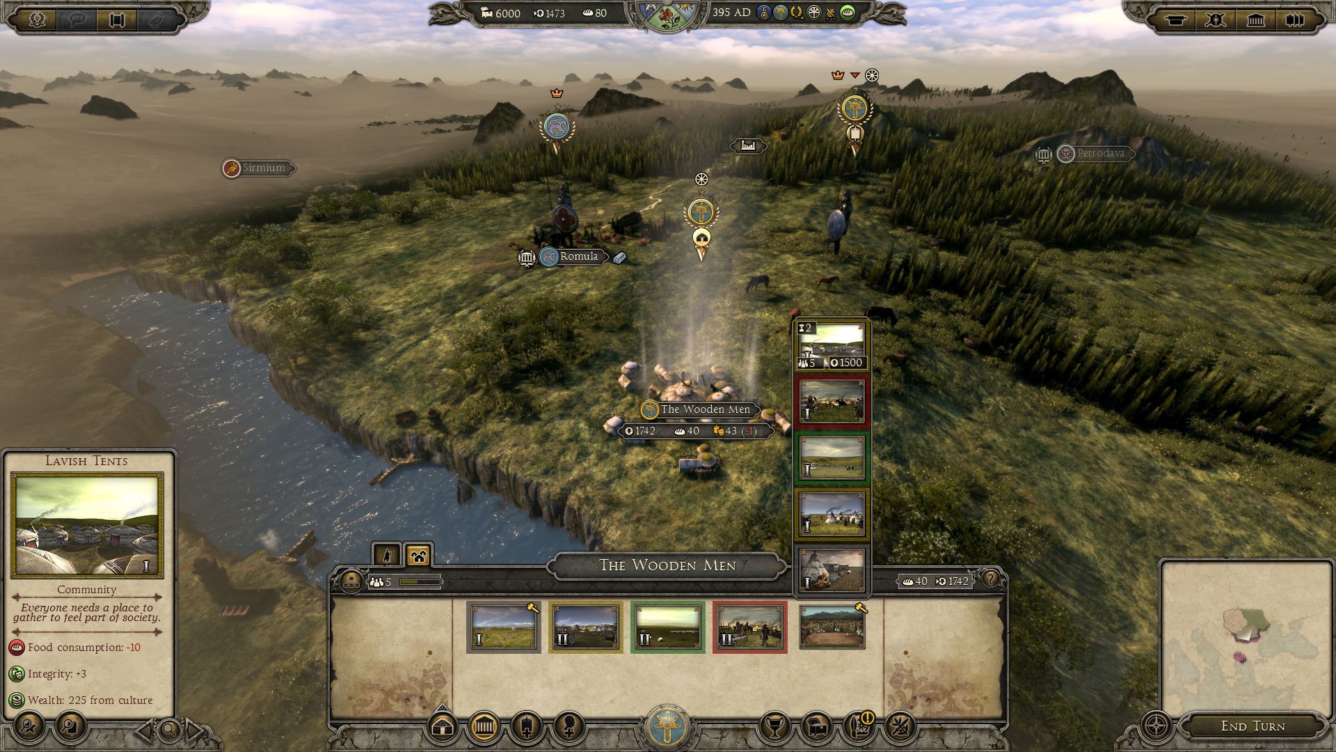 Si llegas a un emplazamiento que te guste puedes asentarte y pierdes la característica de horda, con lo que pasas a actuar como cualquier cultura. Mann afirmó en la cumbre Total War que si pierdes los territorios puedes volver a actuar como horda, pero no lo hemos probado porque la sensación de libertad y de avanzar arrasando y saqueando fue demasiado fuerte y los resultados económicos fueron totalmente satisfactorios con esa vida errante y destructiva.