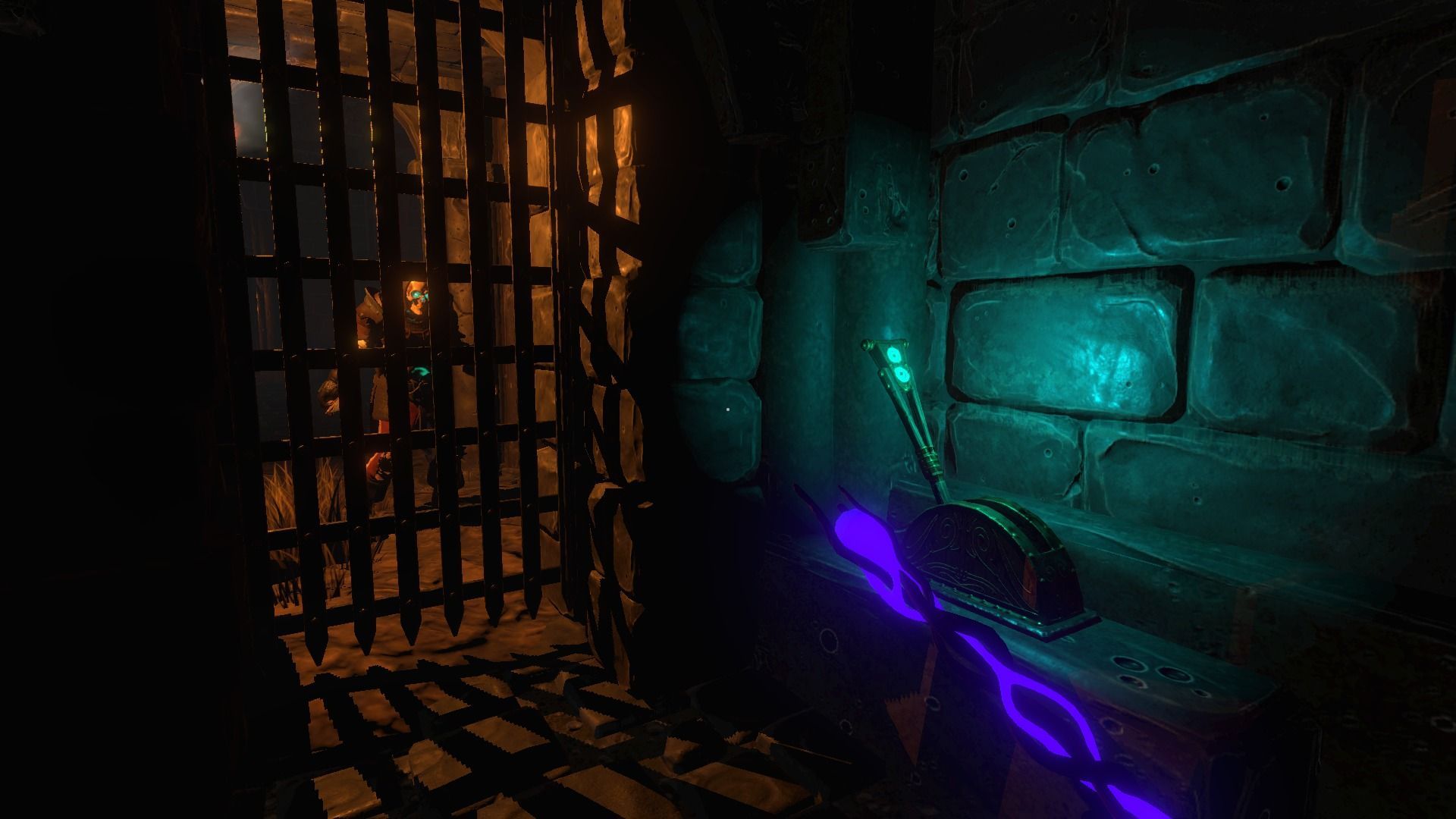 Tras salir de la celda en la que estábamos encerrados recorremos varios pasadizos hasta llegar a uno en el que hay que pulsar una palanca que está fuera del alcance del personaje, y hay que ingeniárselas para activarla utilizando varios objetos que se pueden arrojar, aunque el juego tampoco explica cómo se consigue, así que hay que utilizar el método de prueba y error hasta ver que hay que tener en cuenta el peso y la trayectoria del objeto que se lanza.