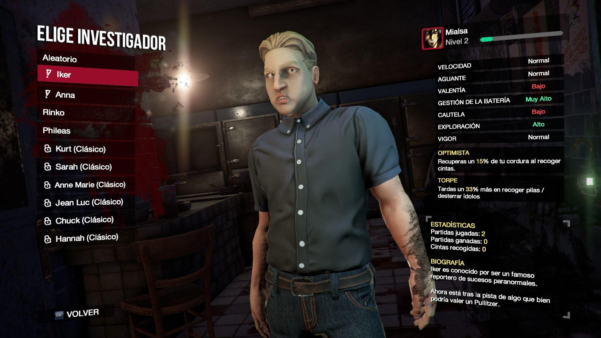 Si asumimos el papel de investigador, tendremos que elegir entre uno de los cuatro personajes iniciales desbloqueados, pudiendo aumentar este número hasta diez a medida que vayamos subiendo de nivel. Cada uno de ellos tendrá atributos distintos que modificarán parcialmente el estilo de juego. De esta forma, aspectos como velocidad, valentía, gestión de la batería o vigor, serán fundamentales para jugar de una forma directa o más enfocada al sigilo. Además, cada personaje contará con habilidades únicas como, por ejemplo, una brújula más precisa, mayor resistencia a los ataques del enemigo o mejor recuperación de la cordura.