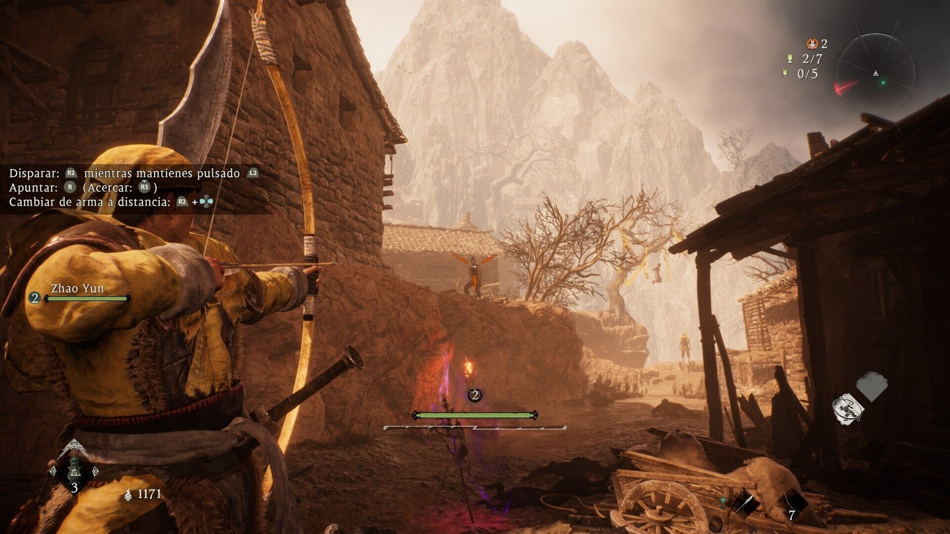 Una de las ventajas de plantear estos niveles en zonas rurales o terreno montañoso es que la agilidad de nuestro protagonista permite escalar sobre muchos hogares y pequeños montículos, una verticalidad que amplía cada zona en una nueva dimensión. Podrás utilizarlo para avanzar por zonas inaccesibles, dar rodeos o, sobre todo, sorprender a tus enemigos. El sigilo –un tanto básico- es opcional aunque bastante recomendable para sorprender a soldados emboscados en las esquinas, sacar el arco y debilitar criaturas que nos pueden causar problemas más adelante, y en definitiva aprovechar distintas tácticas para ser más listos que el numeroso ejército enemigo. Hay multitud de reliquias para los más curiosos en forma de consumibles o equipamiento, así que constantemente iremos encontrando nueva ropa o armas con mejores valores que nuestras pertenencias.