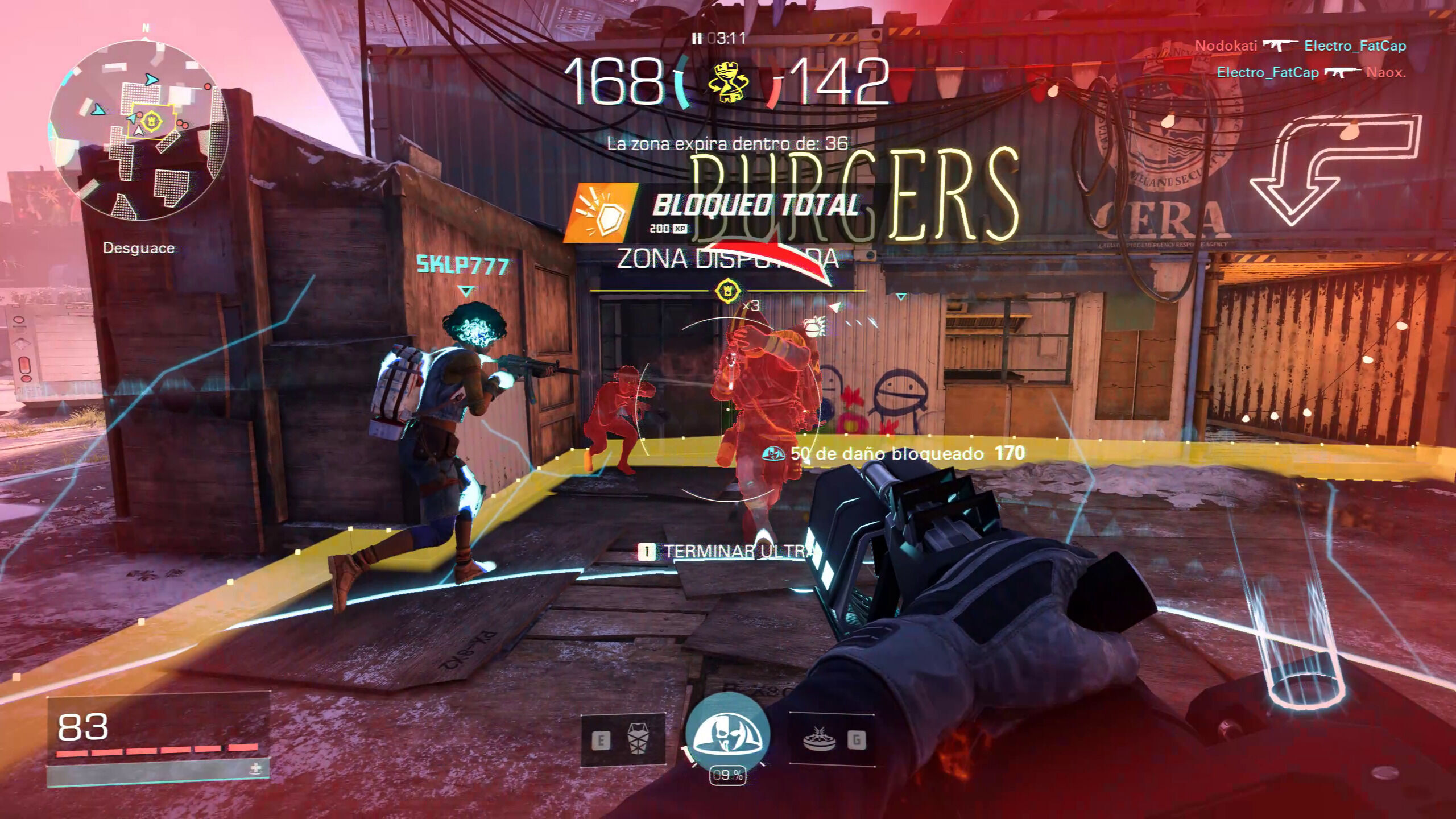 Aquí no hay rachas de bajas, la vida se comporta de forma diferente (la barra de vida representada numéricamente se recupera tras un tiempo sin recibir daño), y las habilidades de las facciones introducen en la ecuación escudos, áreas de curación, cúpulas inaccesibles y otros elementos. Pero si bien es importante adaptarse a ello, lo fundamental es apuntar y disparar bien, aprenderse los escenarios (algunos más estrechos, otros más amplios; por lo general con bastante verticalidad) y sobre todo, saber moverse. Sin ser esto Titanfall ni mucho menos Black Ops 3, el deslizamiento y el salto para pillar desprevenidos a los enemigos es bastante importante.