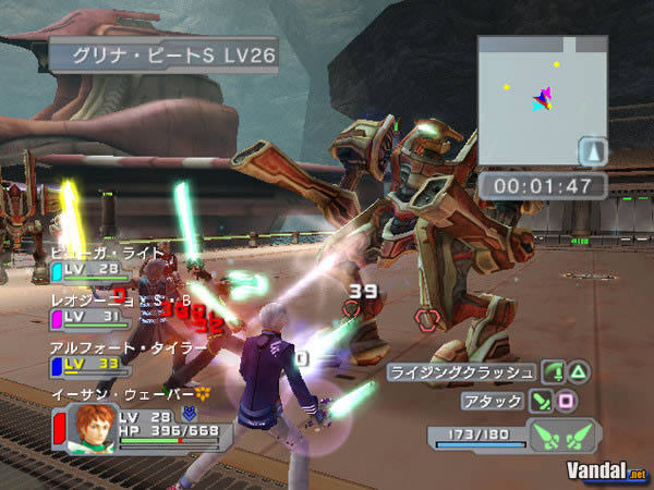 Los ataques básicamente se diferenciarán en débiles y fuertes, que se podrán combinar para hacer sucesiones naturales de hasta seis ataques, cifra con tendencia a aumentar mediante una serie de métodos específicos. Se comenzará la aventura portando una espada simple y una pistola, y a medida que avances irás consiguiendo diversas armas como espadas dobles, lanzas, y por supuesto, armas de largo alcance superiores. Para estas últimas incluso se puede alternar entre una perspectiva en primera persona para apuntar, pero sin poder desplazarte. A nuestra disposición tendremos además un cómodo interfaz que alternará de forma simple y rápida entre tus armas disponibles, para no perder ritmo en medio de la batalla. El sistema de "mags", o robots de asistencia que ya aparecerían en Phantasy Star Online también evolucionará, y pasarán a tener una función más activa más allá de meramente aumentar tus habilidades y atributos si les cuidas.
