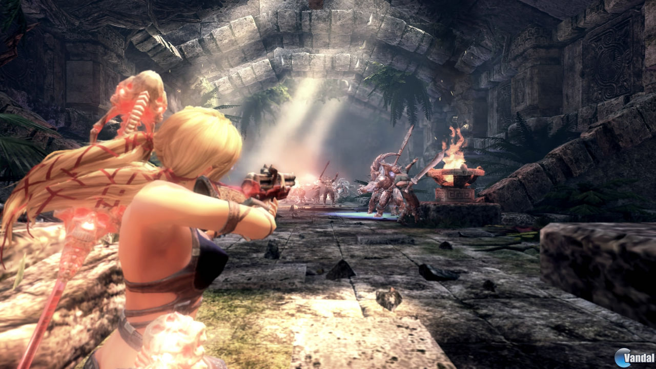 El control no tiene demasiado misterio, los dos sticks para mover el personaje y la cámara, un ataque de espada, uno de patada, botón de salto –con doble salto desde el principio-, y con el gatillo de derecho nos deslizamos por el suelo –una manera rápida de esquivar los ataques-. No solo podemos dar espadazos, también disparar, apretando el stick derecho entramos en modo disparo y con el gatillo del mismo lado disparamos, haciendo zoom con el gatillo izquierdo, como en cualquier shooter en tercera persona, aunque el hecho de que tengamos que entrar y salir de este modo disparo, y la poca precisión y brusquedad a la hora de apuntar, no hacen de la acción a distancia algo muy satisfactorio.