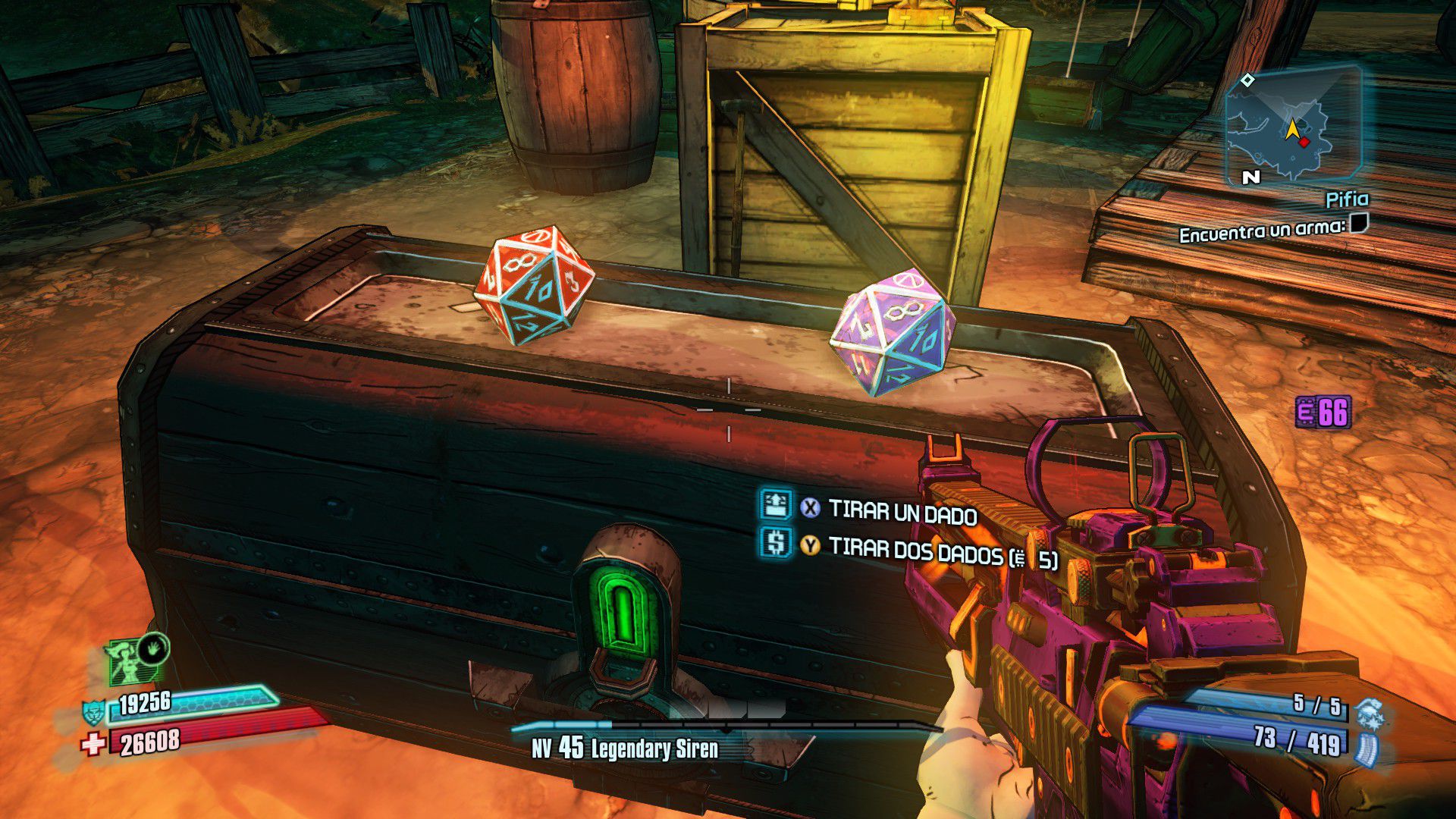 Es cierto que este DLC no trae apenas novedades jugables, por ejemplo en los anteriores se incluyeron nuevo vehículos, pero sí que ofrece nuevos desafíos y rangos de cabronazo, armas y equipo, y alguna curiosidad, como el tirar dados para abrir ciertos cofres, o una ayuda en forma de dado, a cambio de una unidad de heridio, que nos da durante un tiempo limitado vida, munición o defensa.