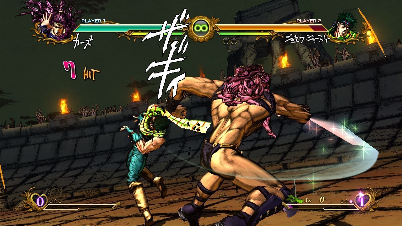 CyberConnect2 ha querido hacer un juego bien equilibrado y divertido, aunque eso no significa que tire por la línea más exigente del género. Los personajes disponen de sus técnicas más reconocibles, pero los ataques básicos son más bien limitados, similar a algunos juegos 2D, y eso puede saber a poco a los jugones provenientes de otras sagas tridimensionales. Tampoco se pide una precisión al frame y cada personaje dispone de un combo automático muy sencillo de ejecutar, por ejemplo pulsando repetidamente un botón. En el caso de Will A. Zeppeli nos bastará machacar el ataque rápido para realizar un combo que no sólo termina de manera espectacular, sino que también daña bastante al oponente que ha caído en la trampa. Funciona parecido al auto-combo de Persona 4 Arena, y facilitará la entrada en el género a aquellos que son seguidores de Jojo pero, quizás, no mucho de la lucha versus. Los movimientos también son fáciles de memorizar y muy comunes entre toda la plantilla, con el giro de media luna y la pulsación de cualquier botón para rematar.