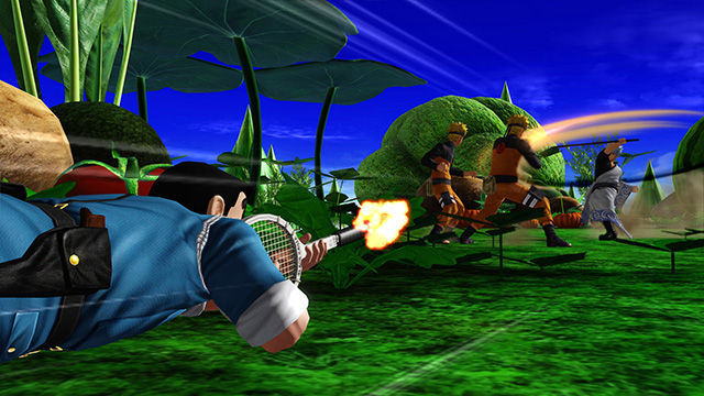 En esencia nos encontramos ante un juego de lucha por equipos en el que pueden enfrentarse hasta cuatro jugadores a la vez. A diferencia de lo que viene siendo habitual, la cámara se sitúa detrás de los personajes y se nos permitirá movernos por unos escenarios más o menos grandes con total libertad. No sabemos exactamente cuántos modos de juego habrá, pero en las partidas que echamos nuestro objetivo era quitarle tres vidas al rival en combates de 2 vs 2 (aunque cada equipo también tendrá un tercer personaje de apoyo que no será controlable).