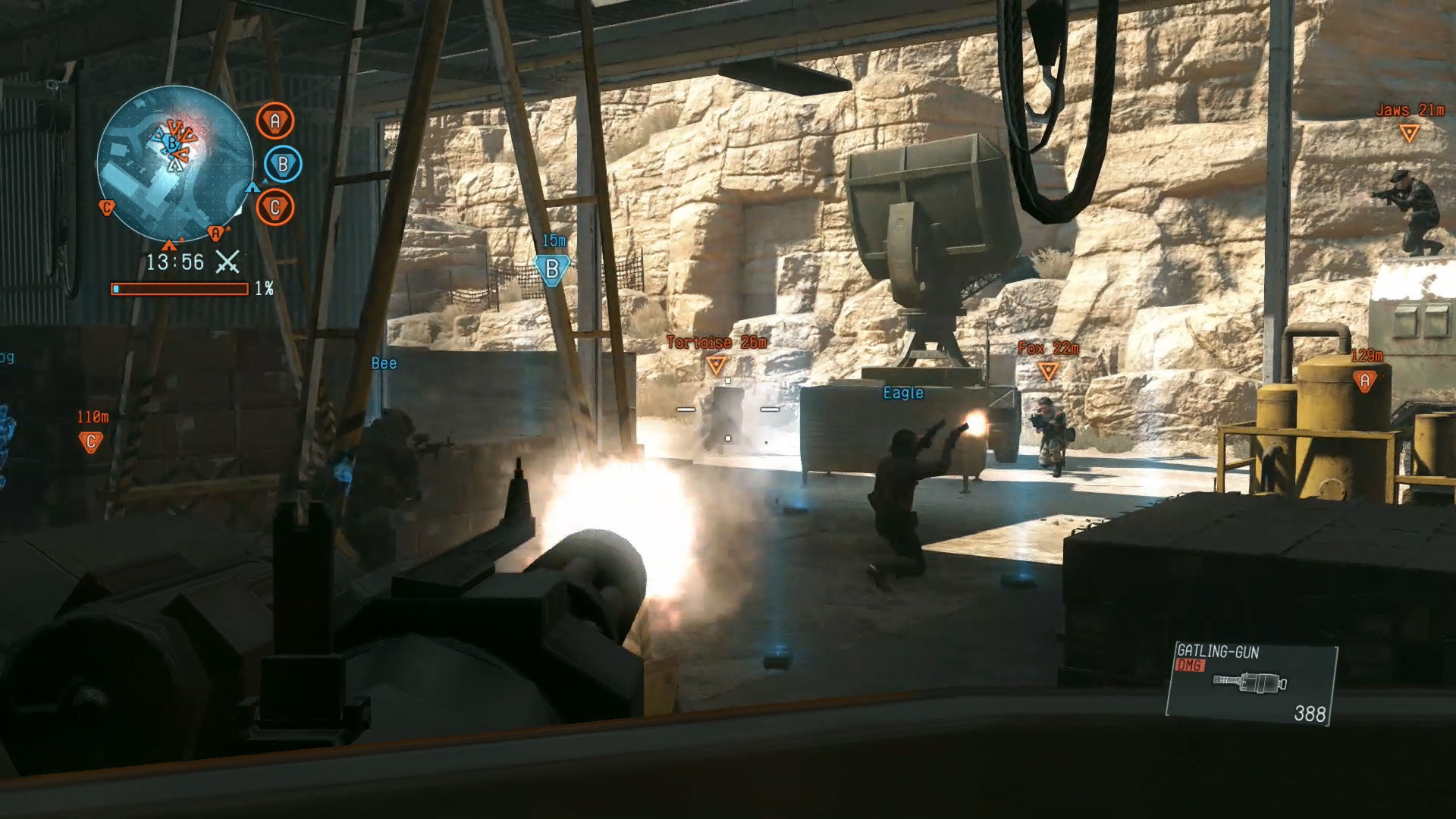 La mayoría de juegos actuales disponen de multijugador, pero no muchos se parecen a esta modalidad online de la saga que debutó con Metal Gear Solid 3: Subsistence y regresó con Metal Gear Solid 4: Guns of the Patriots. Si has buscado la opción en el menú de Phantom Pain no la habrás encontrado todavía, y es que debutará en consolas el 6 de octubre –un poco más tarde en PC, en enero-. Un pequeño desfase respecto al lanzamiento que no parece incomodar demasiado a los jugadores gracias a todo el contenido principal y el volumen de tareas secundarias.