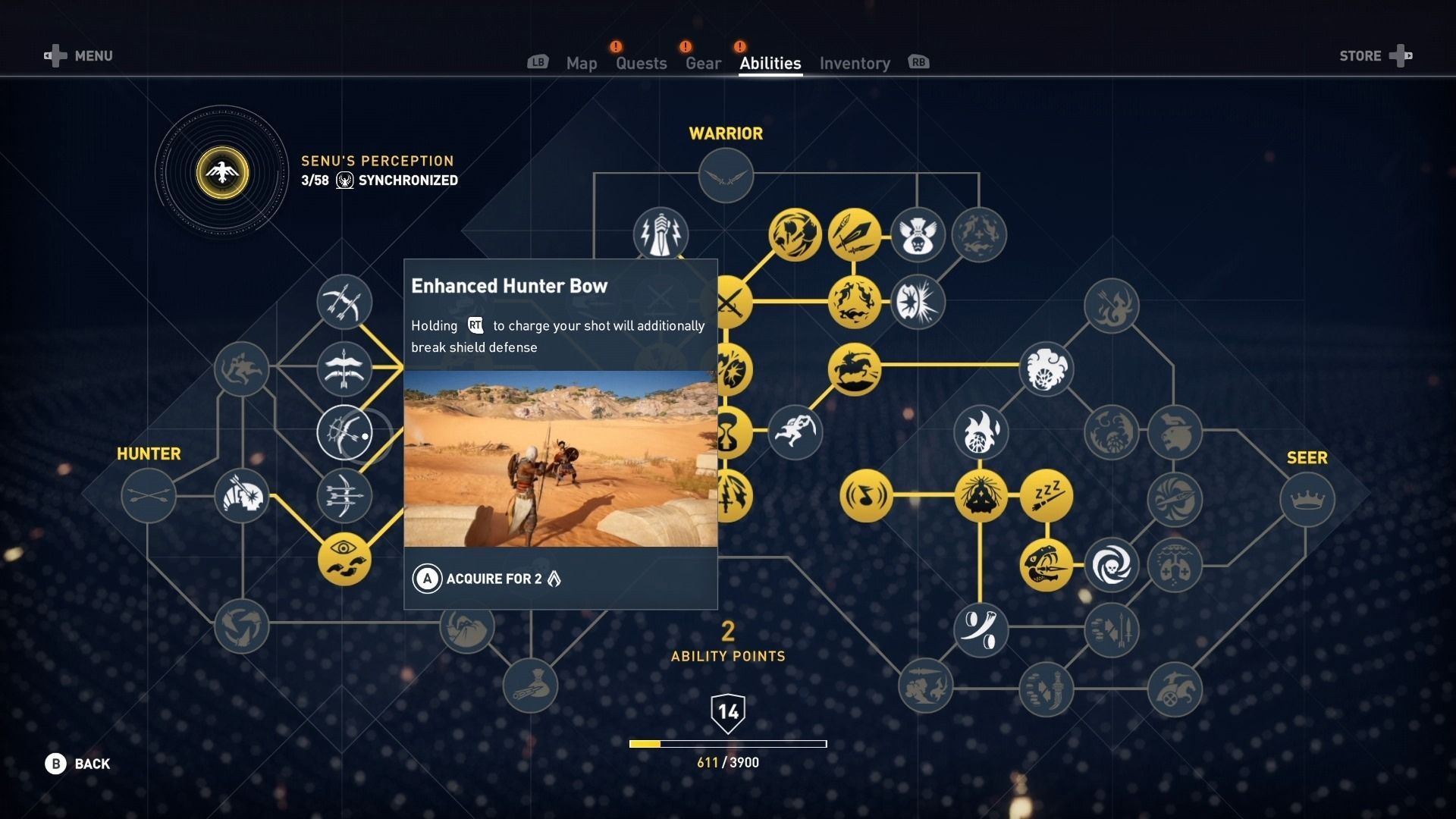 Este Assassin's Creed se siente más que nunca como un RPG, algo que en nuestra opinión le sienta muy bien. Nos dejan muy claro en todo momento el nivel de los enemigos y el de las misiones para saber cuáles son nuestros límites a la hora de avanzar o afrontar ciertas situaciones, y hay multitud de armas y equipamiento, que solo podemos equipar si tenemos el nivel suficiente. Si nuestro personaje es de nivel 15 y tenemos disponible una misión de nivel 17, es mejor no afrontarla o tendremos verdaderas dificultades, así que es mejor mejorar a Bayek antes de intentarlo.