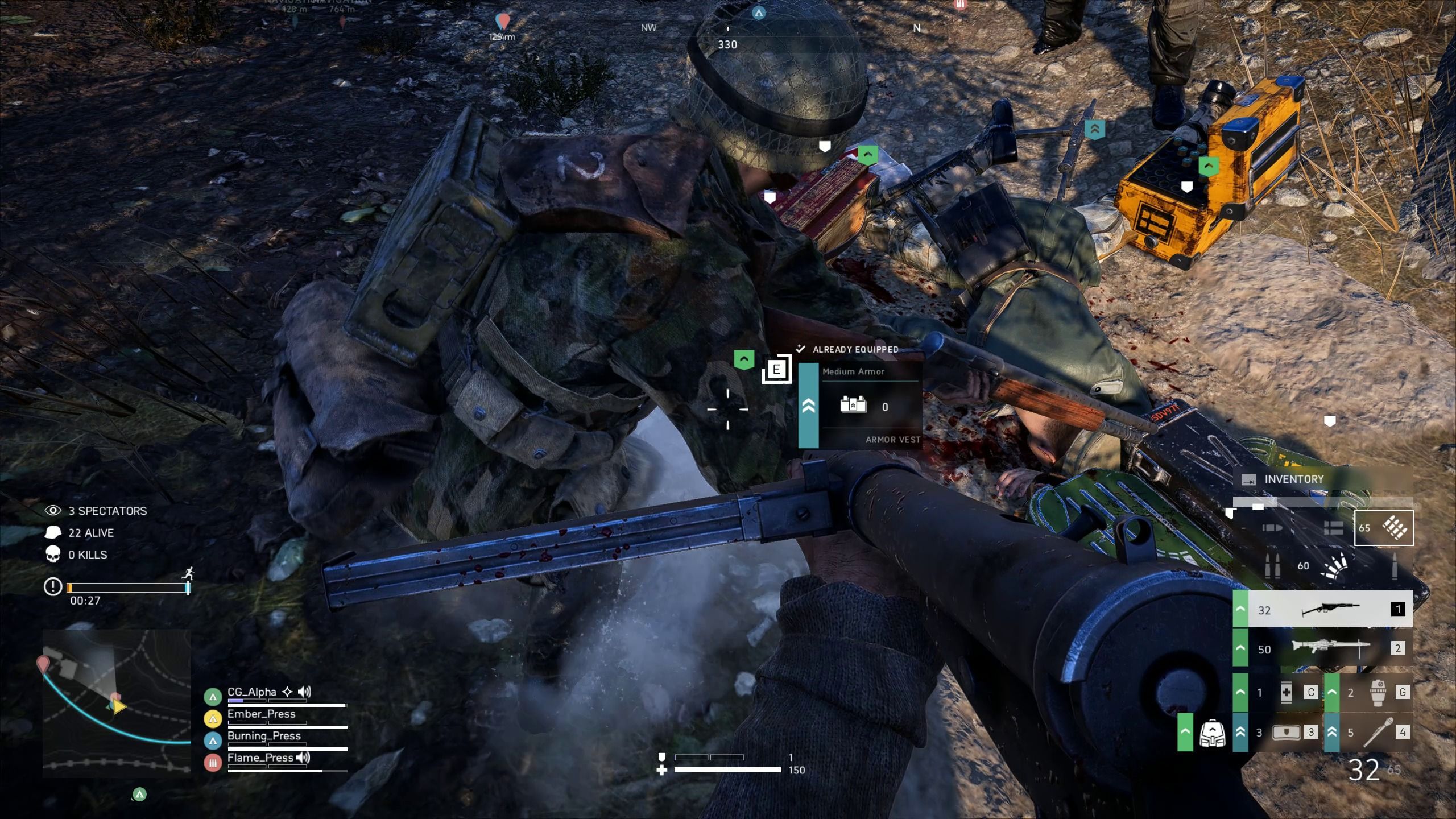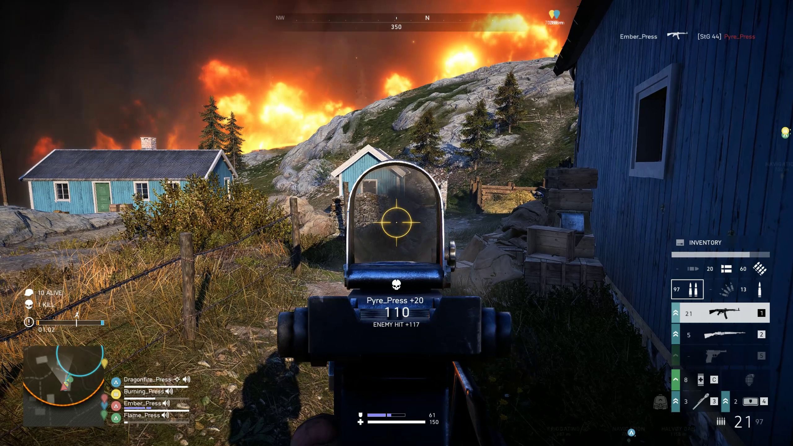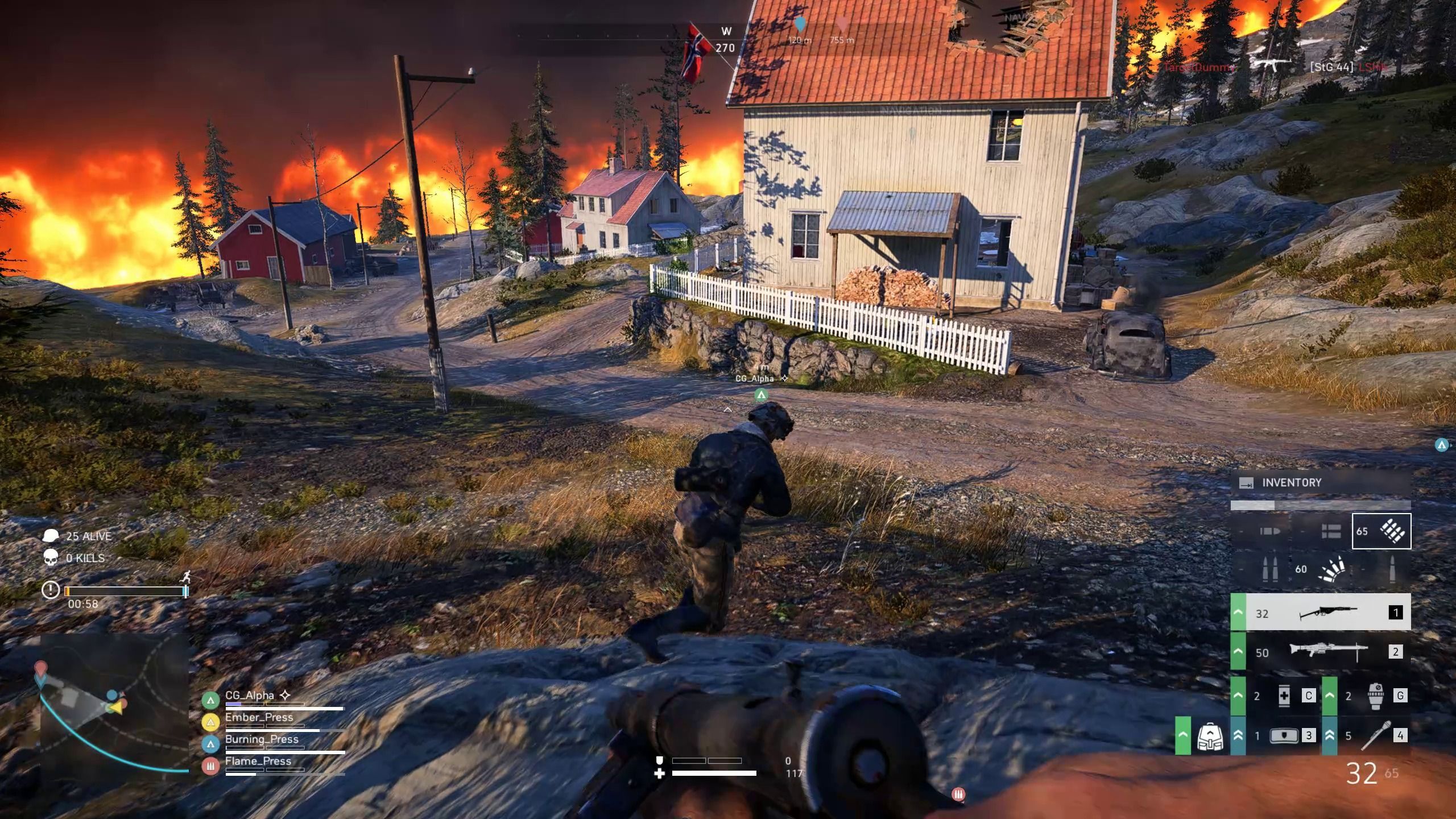 Evidentemente, el fuego irá reduciendo la zona de juego con el paso del tiempo, así que la probabilidad de encontrarnos con otros jugadores irá aumentando para que las partidas no duren eternamente. De hecho, su duración media suele ser de 20 minutos si sobrevivimos hasta el final, siendo 25 el máximo posible.