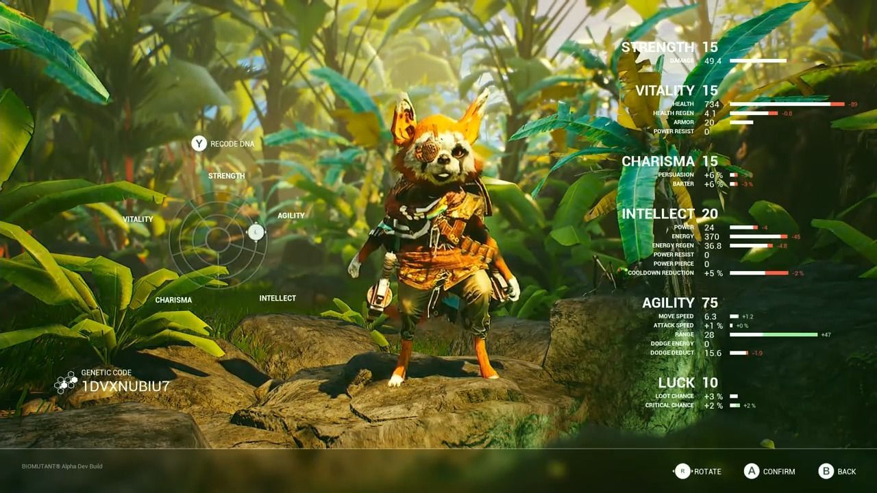 Esta libertad no se limitará sólo a la parte narrativa. Comenzaremos por configurar a nuestro personaje –género, tipo de cuerpo, altura, garras y otros atributos- y no serán ajustes meramente estéticos, sino que al elegir un héroe de complexión grande nos hará más fuertes y resistentes, pero también algo más lentos. Es un detalle coherente de un editor del que dependerán los valores de vitalidad, inteligencia, agilidad y rango de ataque. Más tarde podremos reescribir nuestro código genético para adaptar al protagonista según gustos.
