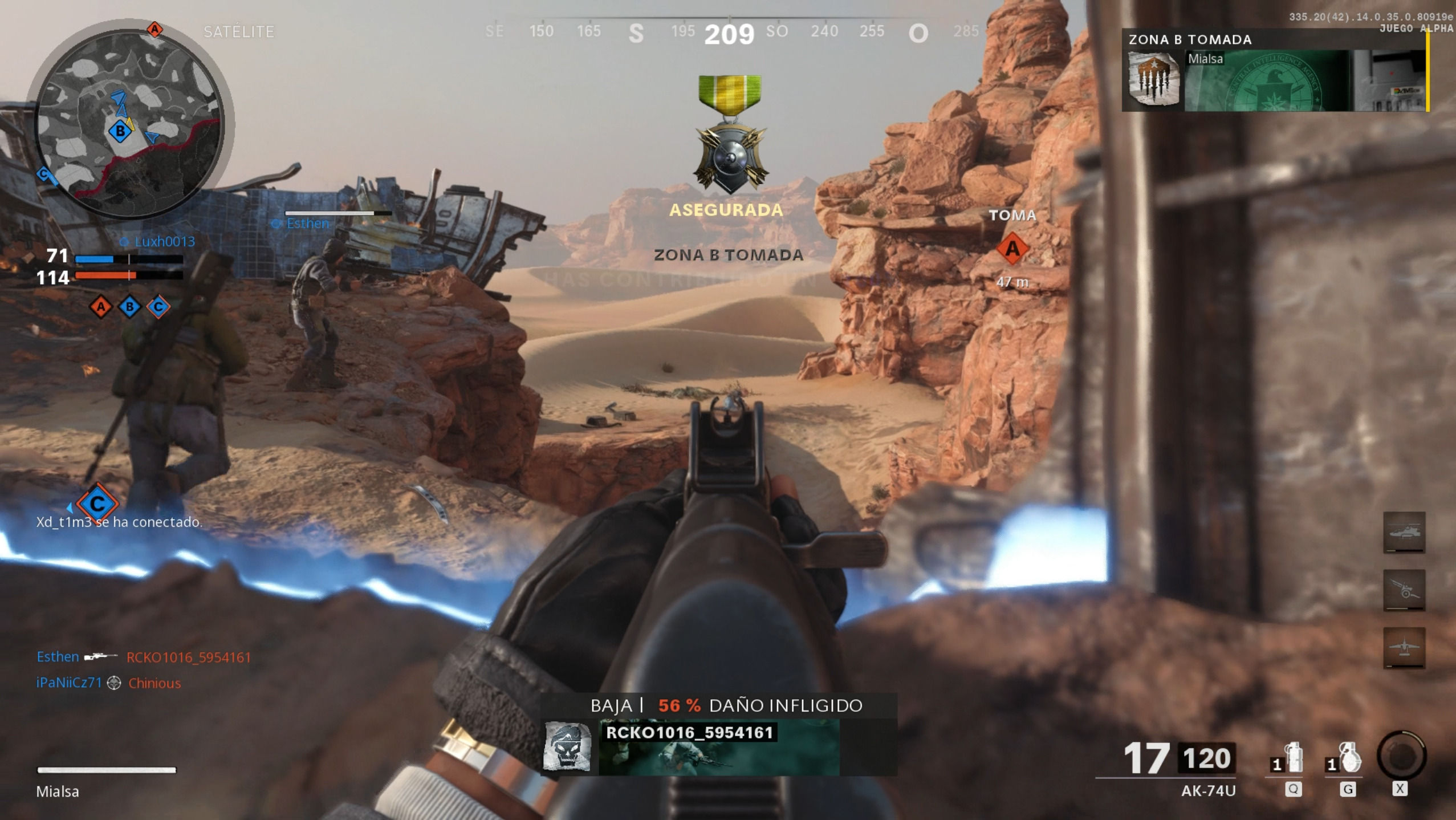 La variante 6 vs 6 nos permite jugar en los clásicos: Dominio, Duelo por Equipos y Baja Confirmada. En total hay tres mapas disponibles: Satellite, Miami y Moscow. El primero de ellos es seguramente el más interesante, desplegándonos en un desierto en el que la profundidad de las dunas choca con las escarpadas y verticales zonas de rocas, favoreciendo tanto el combate cercano como las posiciones de francotirador. Un diseño con un flujo jugable divertido y un tamaño comedido.