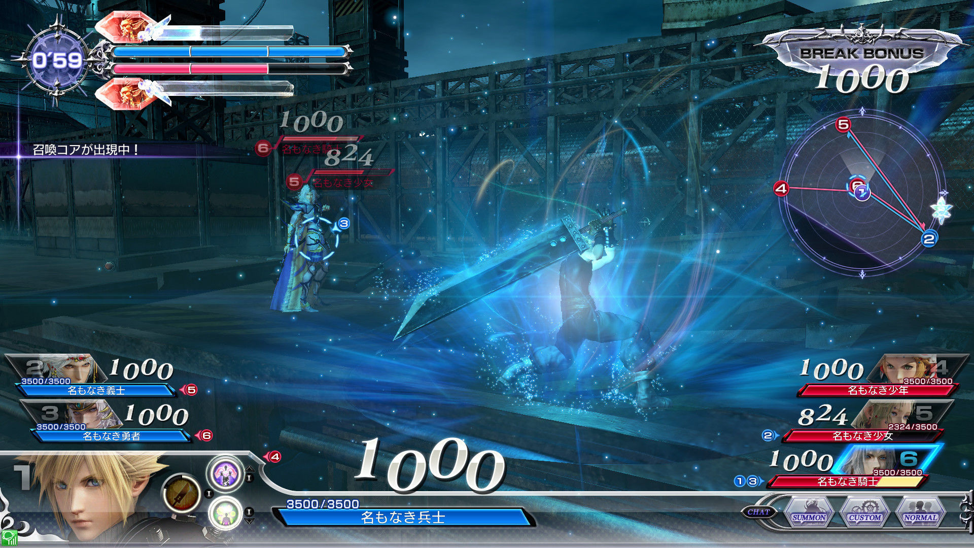 Otro aspecto importante son los combates de tres contra tres personajes, un concepto que sus creadores han pensado por la idea clásica de enfrentamientos por equipos en los RPG por turnos, y que dará mucha más vida a la acción. No parece que haya cambiado sin embargo la existencia de dos tipos de ataque, los de salud –HP- y los de bravura, que indica el daño que producirá sobre los puntos de salud del oponente. Al realizar ataques de bravura aumentas tu valor y reduces el del enemigo, de manera que no reduce la cantidad más crítica –la vida- pero sí es un paso previo para debilitar al rival y reducir su poder ofensivo. Este sistema hace que Dissidia sea algo más que un machacabotones protagonizado por Cloud y compañía, es un aspecto que aporta estrategia y prioridades, y hay incentivos por dañar a rivales con grandes reservas de bravura.