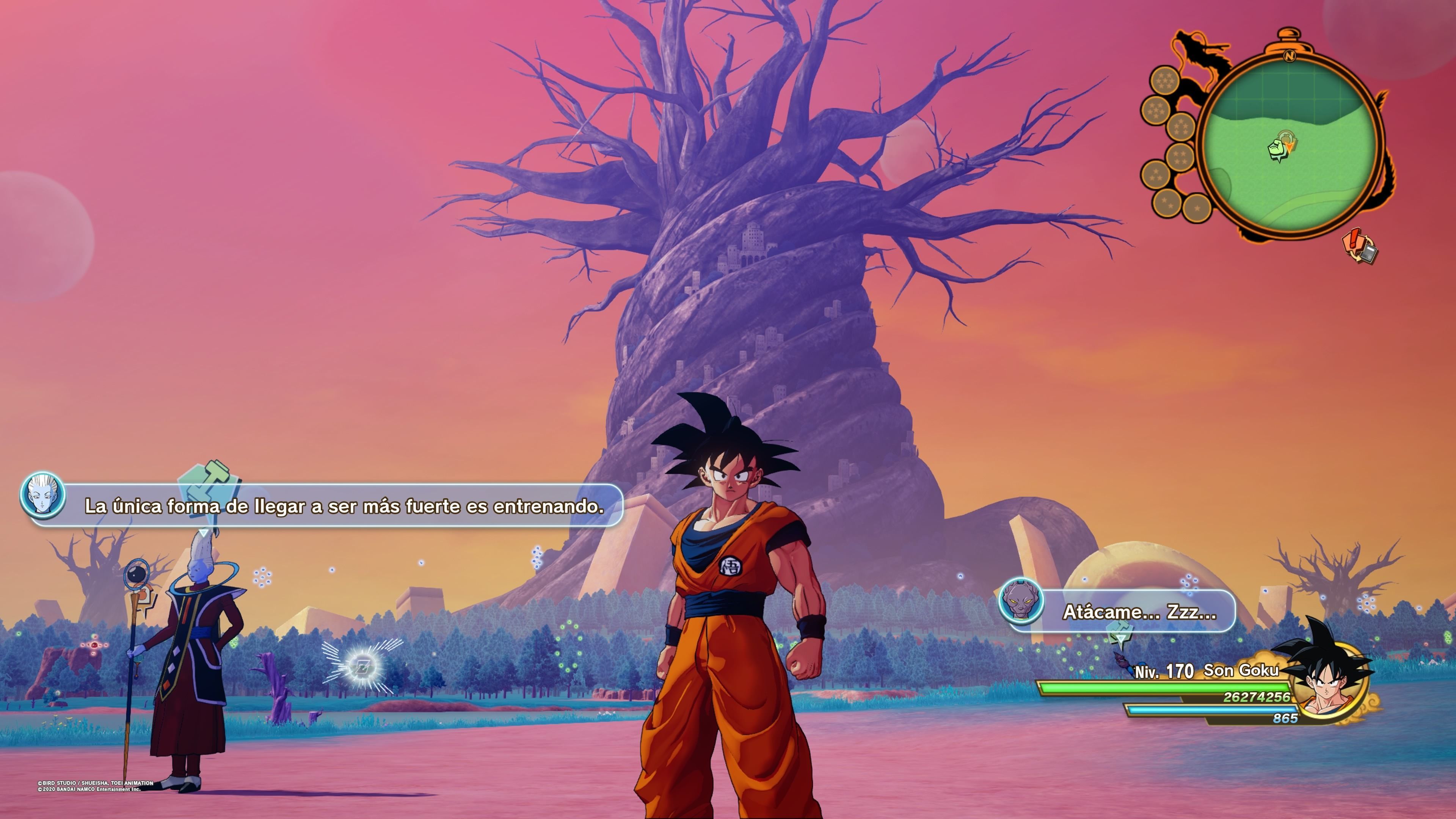 Así pues, este DLC, bautizado como El despertar de un nuevo Poder - Parte 1, nos lleva al planeta de Beerus para entrenar con Whis y hacernos más fuertes. Por supuesto, el objetivo final de todo esto no es otro que poder hacer frente al Dios de la Destrucción y derrotarlo en un espectacular y desafiante combate para que no se aburra. Como veis, la premisa argumental no es más que una excusa para poner sobre la mesa un nuevo sistema de "farmeo" con el que subir niveles a toda velocidad y alcanzar el máximo posible, 250, sin apenas esfuerzo.