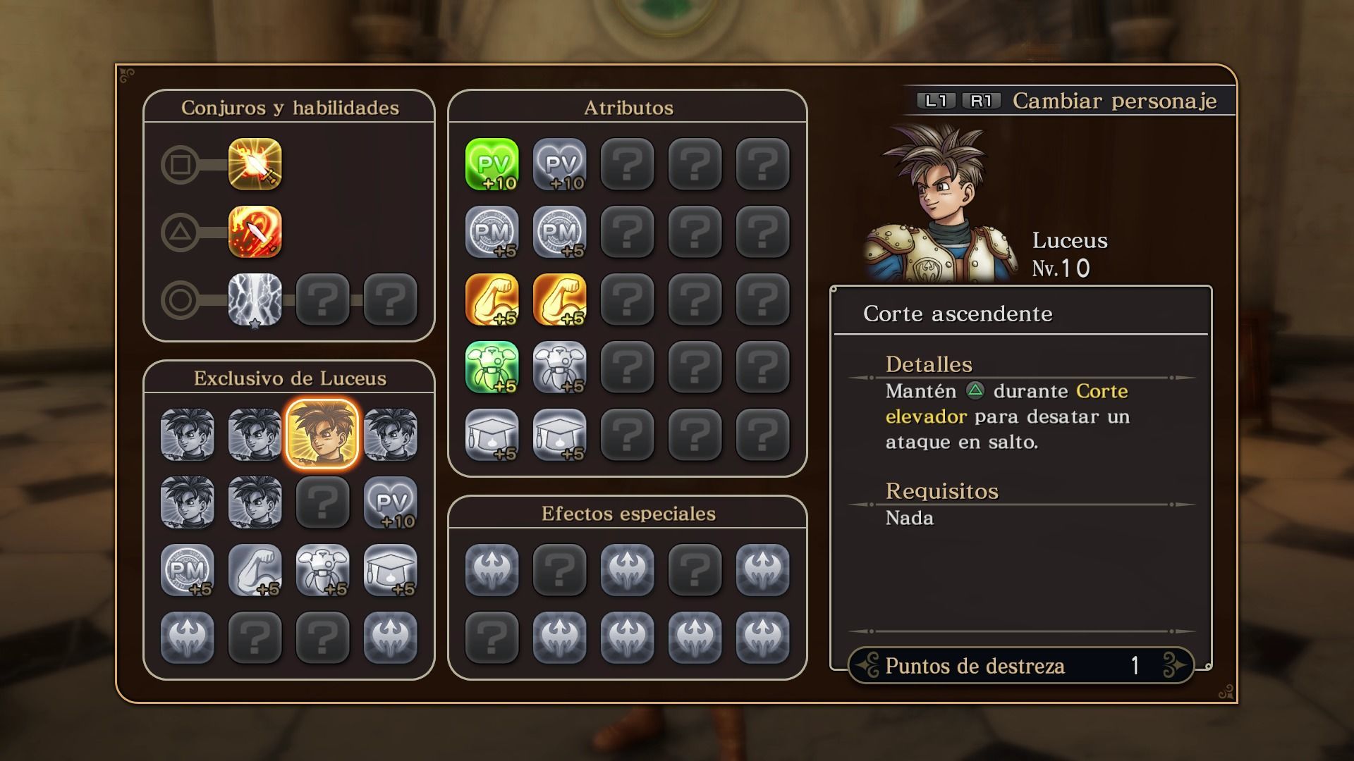 Los personajes suben de nivel como en cualquier RPG, y obtienen puntos de destreza, con los que podemos desbloquear nuevas habilidades y conjuros, mejorar los atributos como el ataque, la defensa, etcétera, y obtener efectos y habilidades especiales, diferentes en cada personaje. Por lo que hemos probado hasta el momento parece que hay juego para rato, además de que las misiones principales por ahora nos parecen muy interesantes, con elaboradas cinemáticas antes y después de cada combate, y alguna que otra sorpresa.