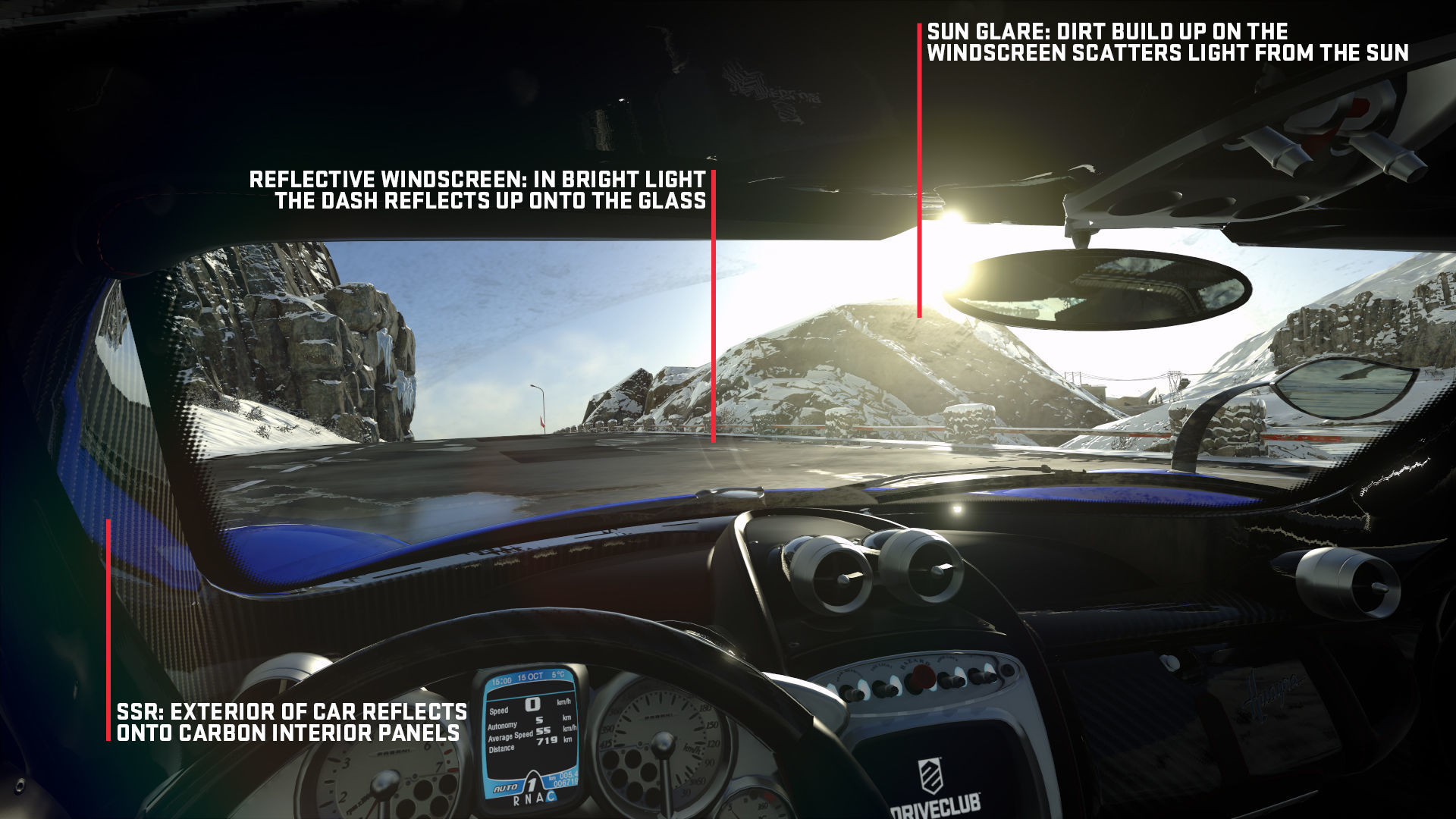 Y como habéis podido ver por los últimos vídeos publicados, el aspecto gráfico cada vez luce mejor, y este tiempo extra del retraso le ha venido de maravilla para que sus creadores hayan aprendido a sacarle más partido a PlayStation 4. Su apuesta por los 1080p y 30fps, incomprendida por muchos que pedían los 60fps a toda costa, es defendida a capa y espada dentro del estudio, que se habían marcado como objetivo realizar los coches más detallados vistos nunca en un título de conducción, y vaya si lo han conseguido. Los méritos técnicos de DriveClub son muchos, y a veces se confunde el concepto fotogramas por segundo -fps- con sensación de velocidad, algo de lo que no carece este juego, ni mucho menos.
