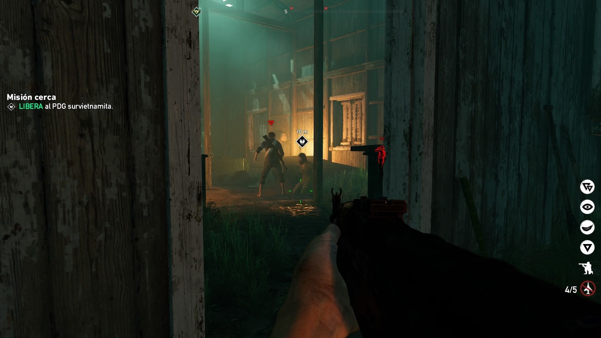 Pero, ¿qué haremos en Horas de oscuridad? Nuestra misión principal es muy clara, y estará de una forma u otra, muy presente: localizar a nuestros compañeros apresados y reunirnos en el punto de extracción al final del valle. Por el camino encontraremos campamentos fuertemente protegidos que podemos arrasar, búnkers llenos de túneles infestados de enemigos, aviones derribados, aldeas fantasmas, arrozales y alguna que otra granja. Debido al tamaño del escenario y a la disposición geográfica, este contenido es mucho más lineal, y acabaremos haciendo casi todas las misiones casi sin querer porque se van sucediendo una otras otra en nuestro camino.