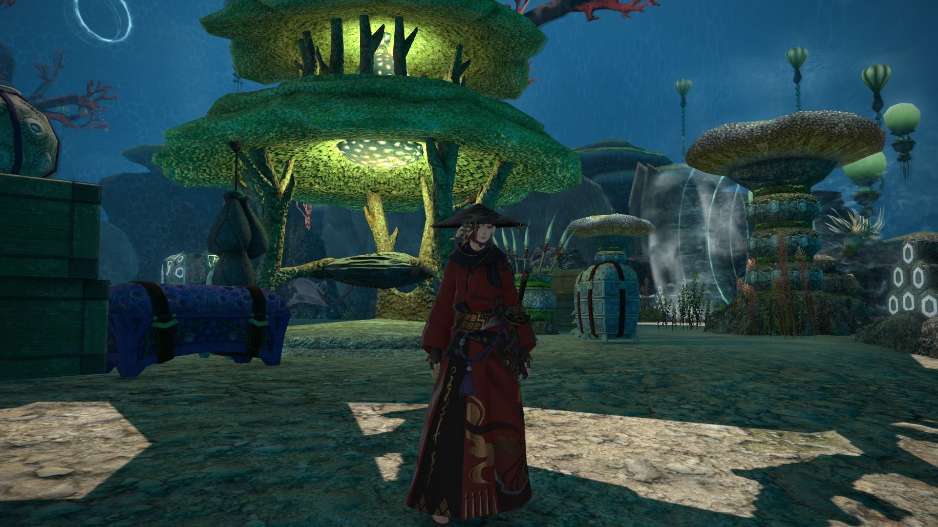 En The Ruby Sea accedemos a dos localizaciones: Tamamizo y Onokoro. Tamamizo es un enclave submarino, aunque está dentro de una gigantesca cúpula en la que no entra el agua, poblado por los hombres tortuga kojin y habitantes del mar. En la demo da la sensación de que la parte submarina es básicamente una cuestión estética y que el agua sirve para desplazarse de un lugar de interés a otro.