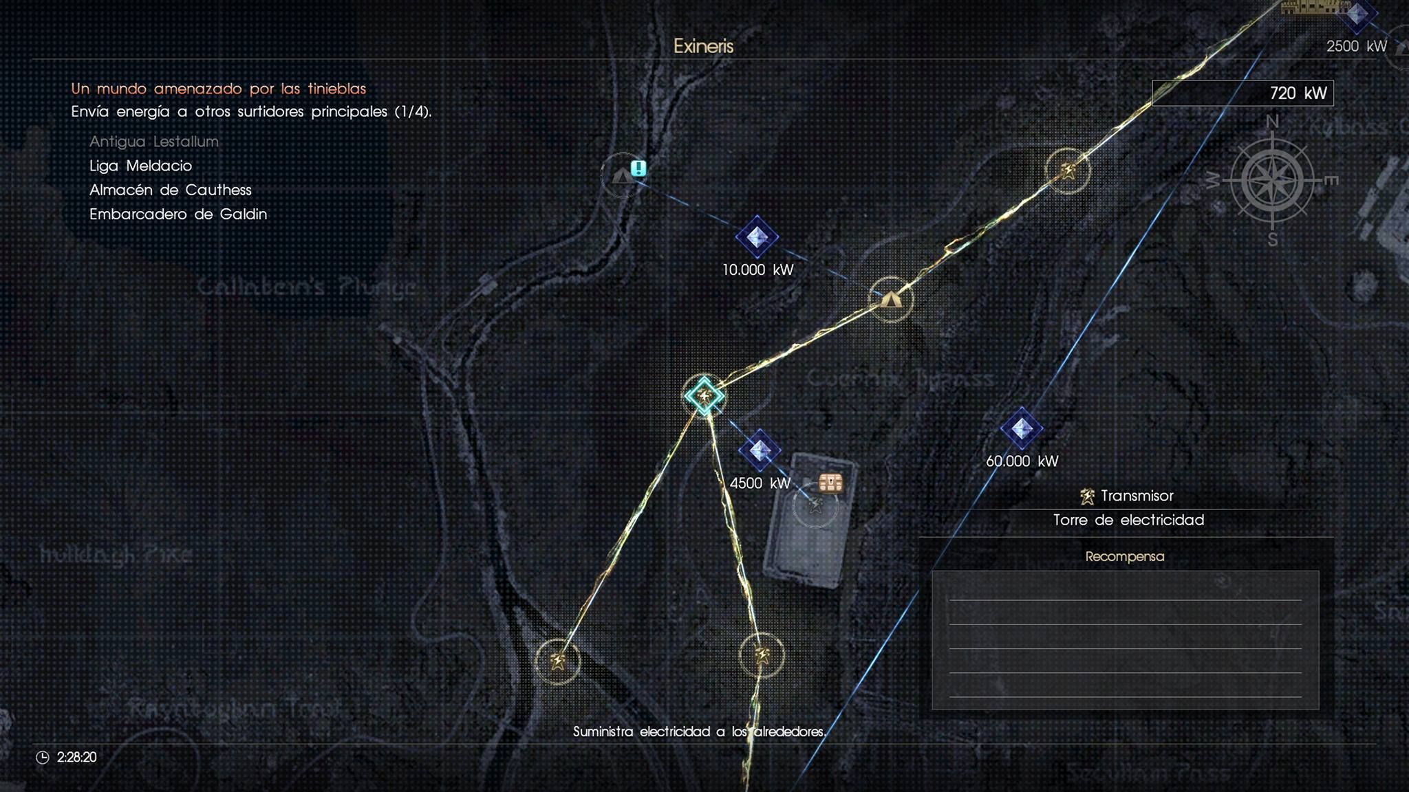 El objetivo general consiste en resolver misiones para ganar dinero, experiencia y electricidad. La base de esta resistencia está en Lestallum, esa pequeña ciudad con una central eléctrica –que ya hemos salvado en alguna ocasión a lo largo de FF XV-, y a medida que conseguimos más potencia se abrirán más tiendas con ropa, fotografías, mejoras del arma –un poco más elaborado que en el juego original-, nuevas misiones, e incluso nuevos lugares a lo largo de Eos para visitar en estas nuevas condiciones. Consiste, en resumen, desbloquear nodos en una red eléctrica con la cantidad de watios obtenida para ir consiguiendo más encargos, rescatar personajes y llegar a nuevos núcleos de población.