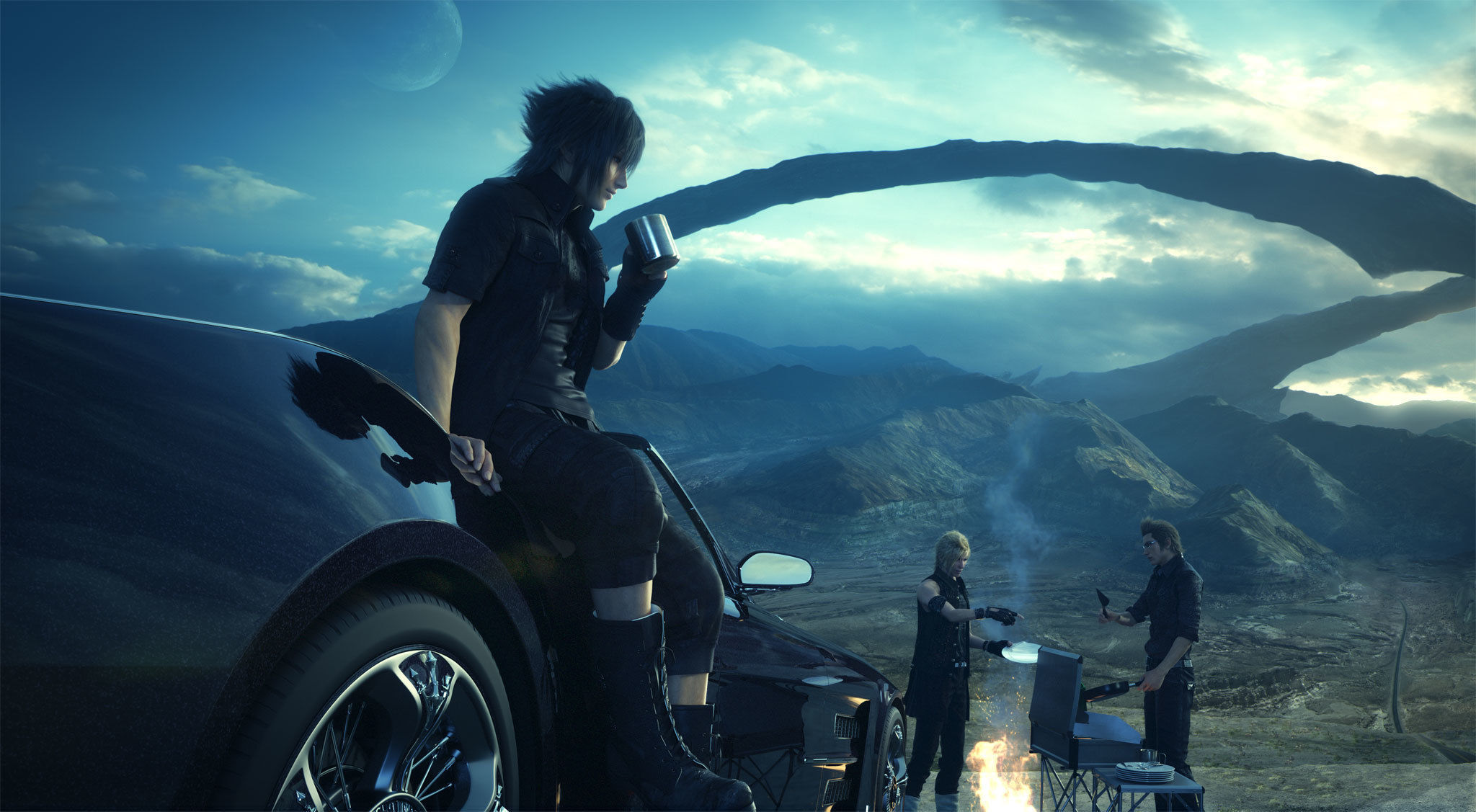 Detrás de este viaje –los temas principales del juego son el propio viaje y la amistad- hay una inspiración clara de las road movie, y es que el grupo protagonista, únicamente protagonizado por hombres tiene una misión clara: recuperar el cristal robado a la ciudad de Lucis. La aventura será tan abierta como quiera el jugador, y si decide apartarse de los eventos que hacen avanzar la historia encontrará multitud de detalles que afectan a este mundo de manera muy novedosa –al menos, para un Final Fantasy-. El clima, que cambia, tiene un impacto táctico en las condiciones de la batalla, con diferentes tipos de variables que tienen efectos mágicos en función de los patrones climáticos. El uso del fuego en un día caluroso, por ejemplo, no sólo daña a los monstruos, sino que también puede prender fuego a alrededores, asustar a los enemigos por su calor o afectar a nuestros compañeros. Por tanto, el uso de la magia también puede ser una desventaja a Noctis. El motor gráfico incluso calculará la formación de charcos según los desniveles del terreno y su evaporación o el secado de la ropa bajo el sol.
