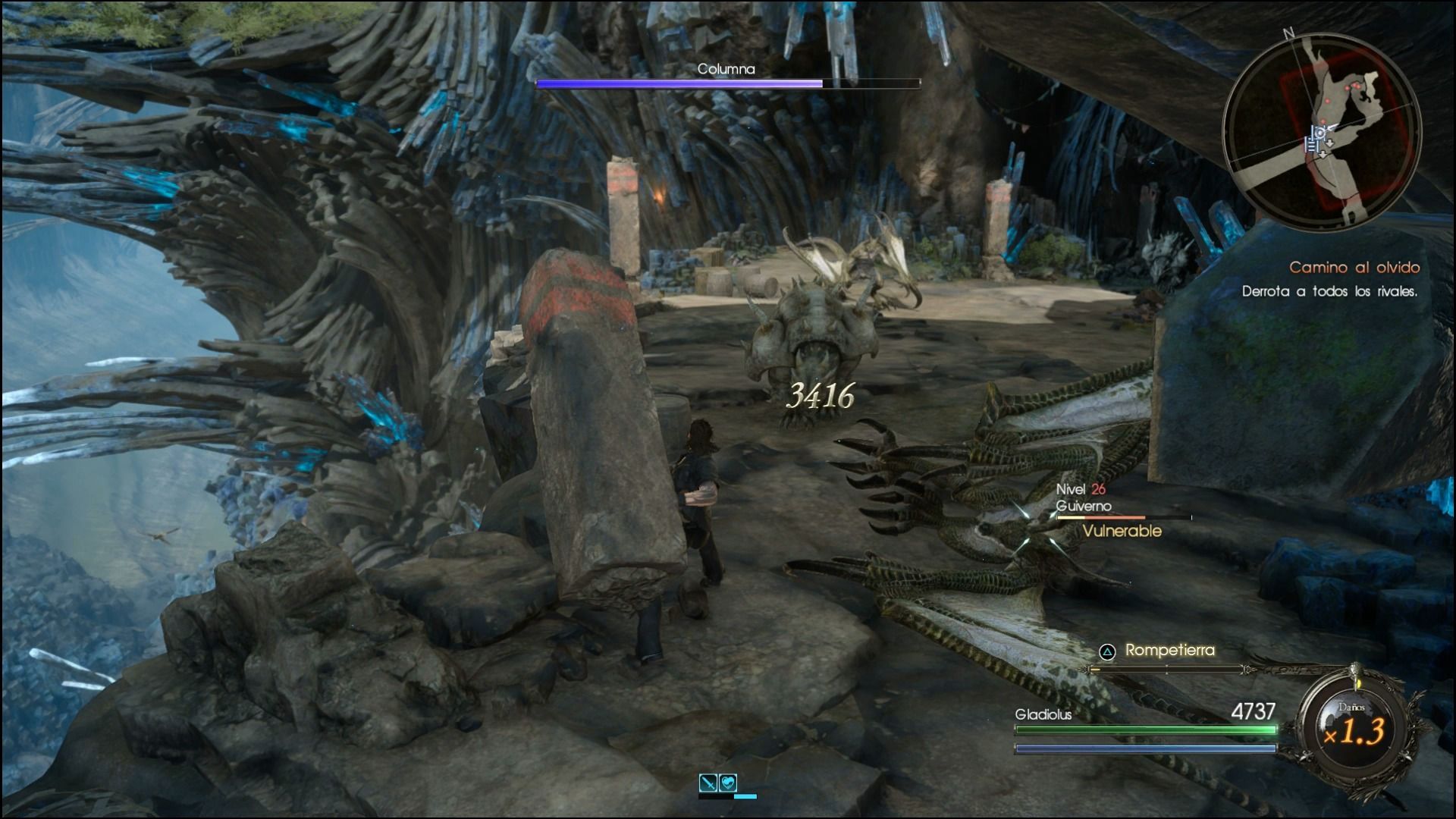 En lo jugable hay que decir que sí nos ha parecido bastante divertido, ya que controlar a Gladio se siente como algo realmente diferente respecto a Noctis, y además nos enfrentamos a nuevos jefes y enemigos en esta mazmorra, que tiene un desarrollo completamente lineal. Además de que los movimientos de Gladio son diferentes, así como sus destrezas especiales, también se ha incluido una curiosa mecánica, ya que podemos arrancar unos pilares de los escenarios para usarlos contra los enemigos, algo con lo que les hacemos mucho daño.