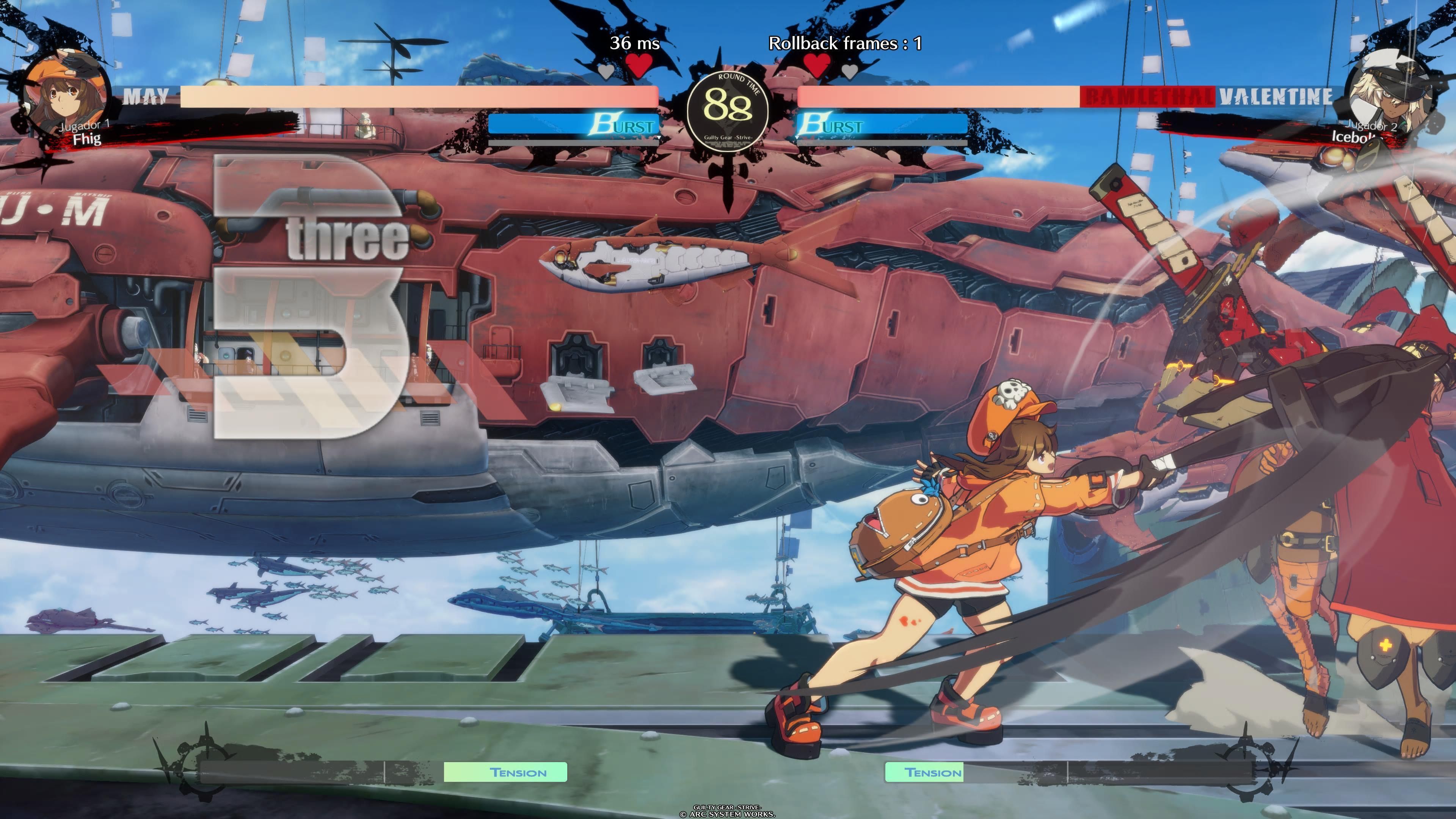Gracias a que la desarrolladora ha incluido en la interfaz unos contadores que nos indican tanto nuestros milisegundos de retraso como los frames de rollback (decid adiós a las típicas barras similares a las de las coberturas de los móviles para medir el estado de la conexión con nuestro oponente), hemos podido confirmar que jugando en salas europeas hemos tenido una media de 30 ms y entre 0 y 1 frames, lo que es una auténtica pasada y a los mandos nos ha resultado técnicamente indistinguible de estar luchando contra alguien en local. Es más, en salas de otros continentes hemos podido disputar partidas contra jugadores americanos y japoneses con una media de 120 m y entre 2 y 3 frames de rollback, obteniendo una experiencia prácticamente igual de buena. No exageramos si decimos que nunca hemos jugado con tantísima fluidez y estabilidad a un juego de lucha a través de internet, lo que nos ha devuelto la fe en el género y en lo que está por venir.