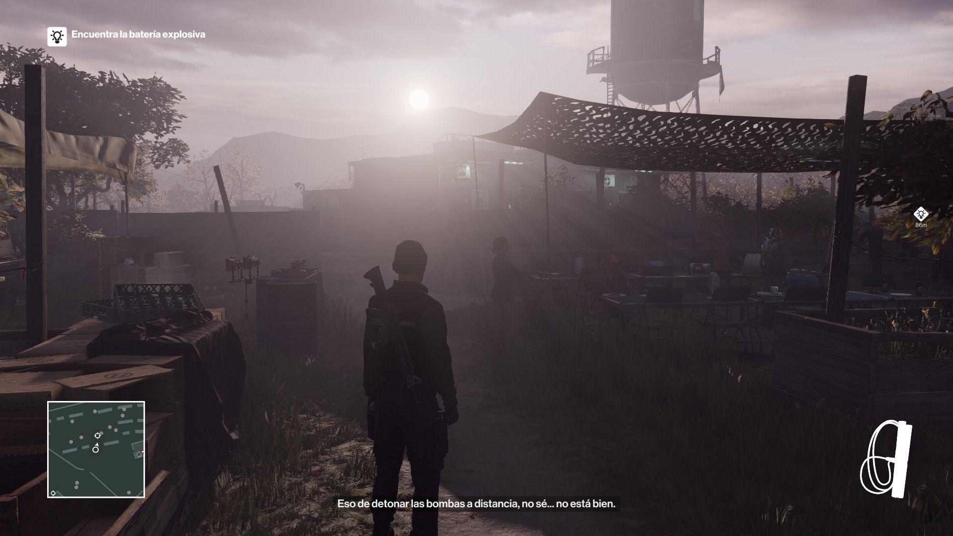 El mapa es más horizontal que en el hotel de Tailandia o el edificio de París, pero olvídate de pasear libremente por el campo con tu primer disfraz de soldado. Hay diversas zonas controladas por facciones diferentes, lo que significa que no podrás acercarte a un líder sin levantar sospechas de sus guardaespaldas, ni entrar en un hangar si no dispones de la apariencia exigida.