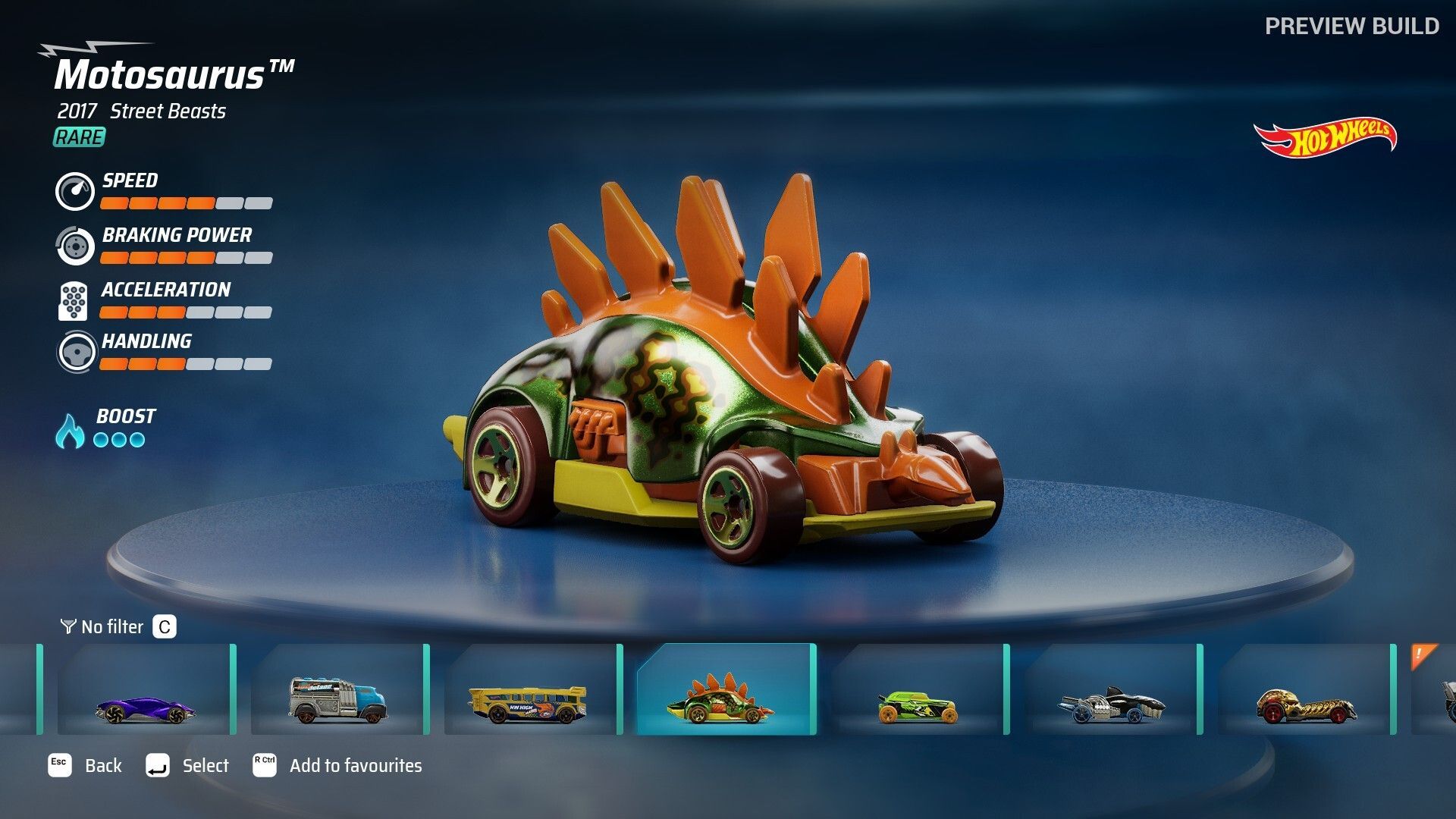 Pero que no te engañe una decoración estrafalaria, lo que importa realmente son sus valores de velocidad, potencia de frenada, aceleración y control –además del tipo de turbo que utiliza-, de manera que probablemente querrás jugar con todos antes de decidir tu favorito independientemente de si se trata de un coche con forma de estegosaurio o sandwichera.
