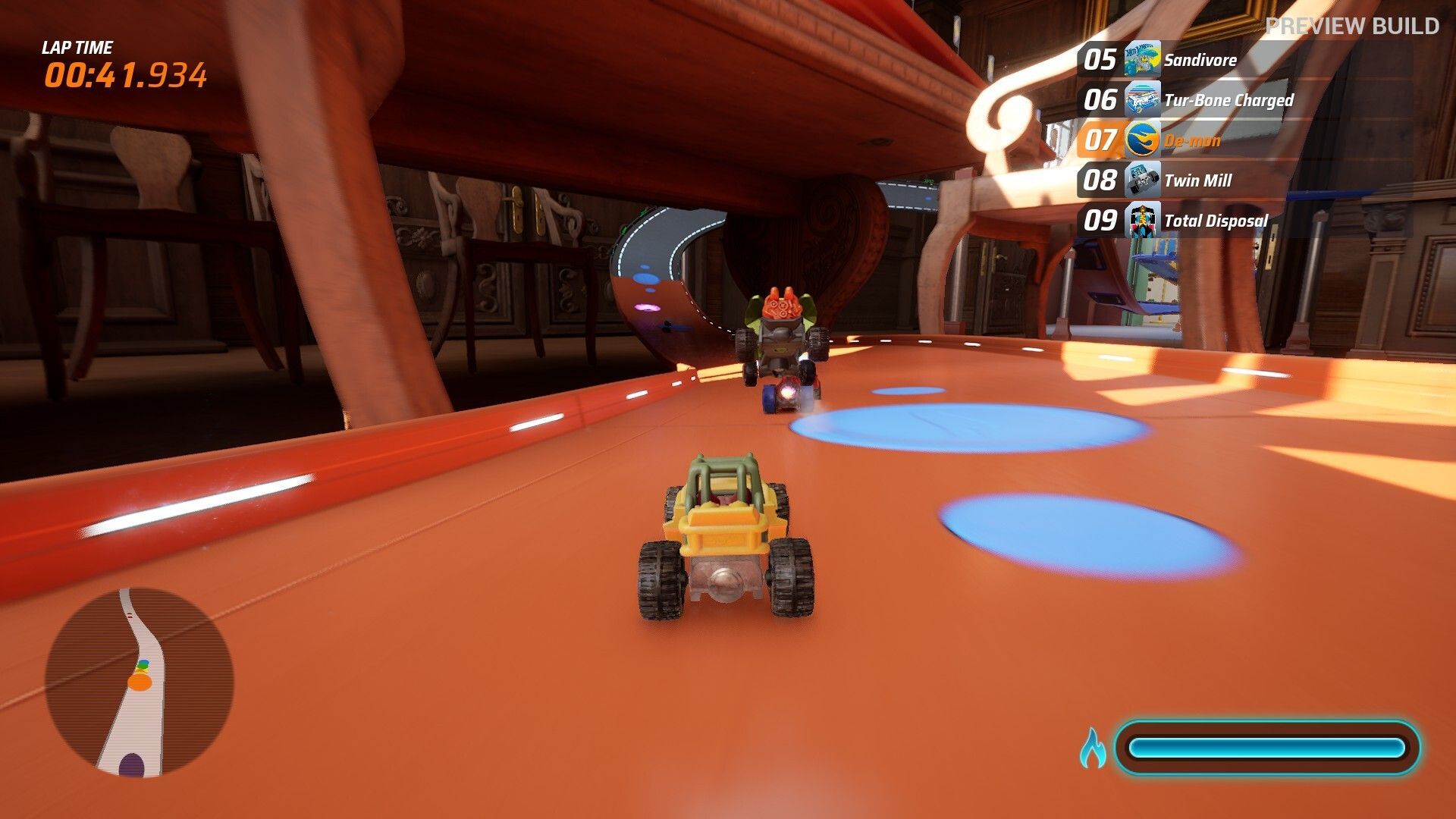 Tal y como podríamos esperar, Hot Wheels Unleashed es un título de velocidad con jugabilidad muy arcade y desenfadada, donde seleccionamos uno de los vehículos disponibles –más de 60 distintos- para buscar la victoria en pistas que simulan circuitos construidos en localizaciones más o menos cotidianas. Como los juguetes en los que se inspira, encontraremos todo tipo de coches, desde aquellos con diseño más agresivo y preparado para la competición como otros de aspecto peculiar.