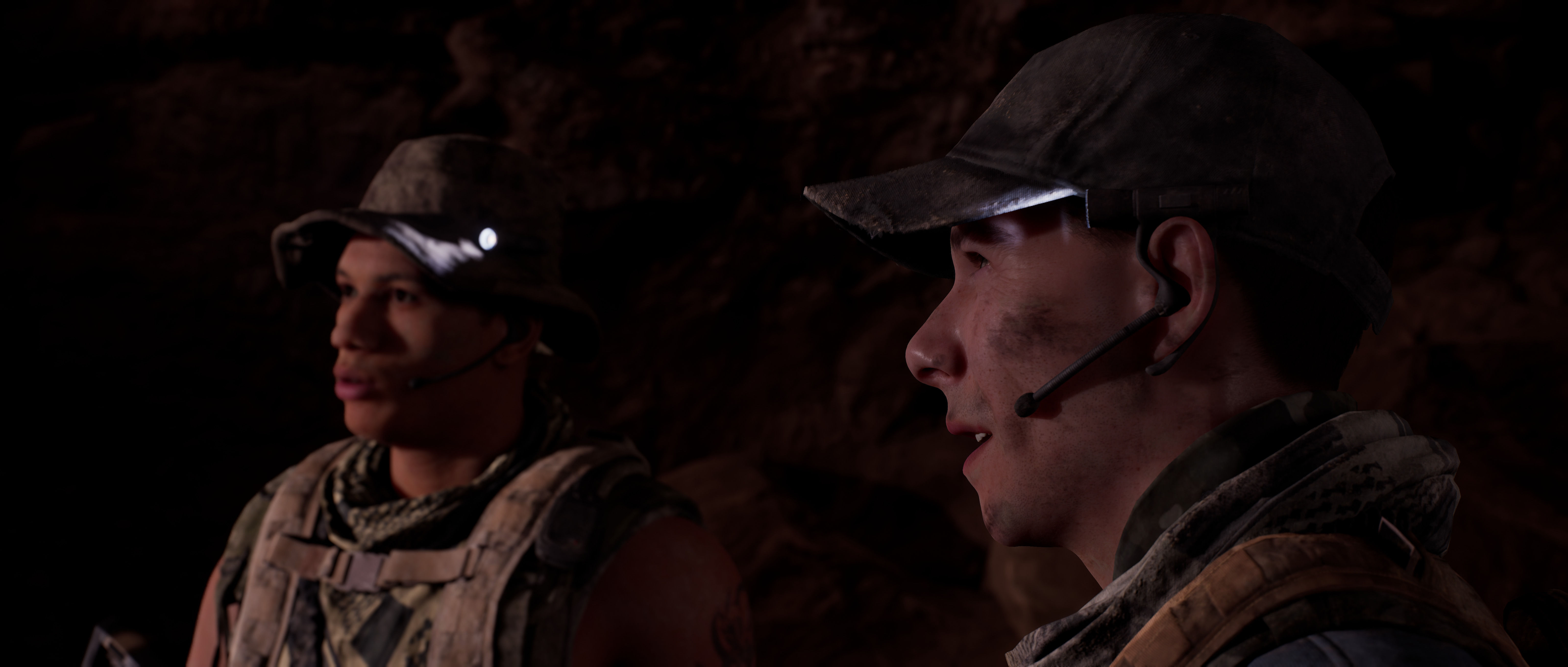 Esto último es algo que se ve desde el primer momento. El breve gameplay que hemos visto estaba protagonizado por Jason y Nick, quienes se encuentran tras caer en los oscuros túneles que dan acceso al templo; los jugadores controlan a uno u a otro según estén jugando al estándar Theatrical Cut o al Curator’s Cut, que ofrece un punto de vista distinto de las mismas escenas y que es una recompensa exclusiva para quienes reserven el juego. Tras entrar al templo se encuentran con los soldados Clarice y Marwin, este último herido.