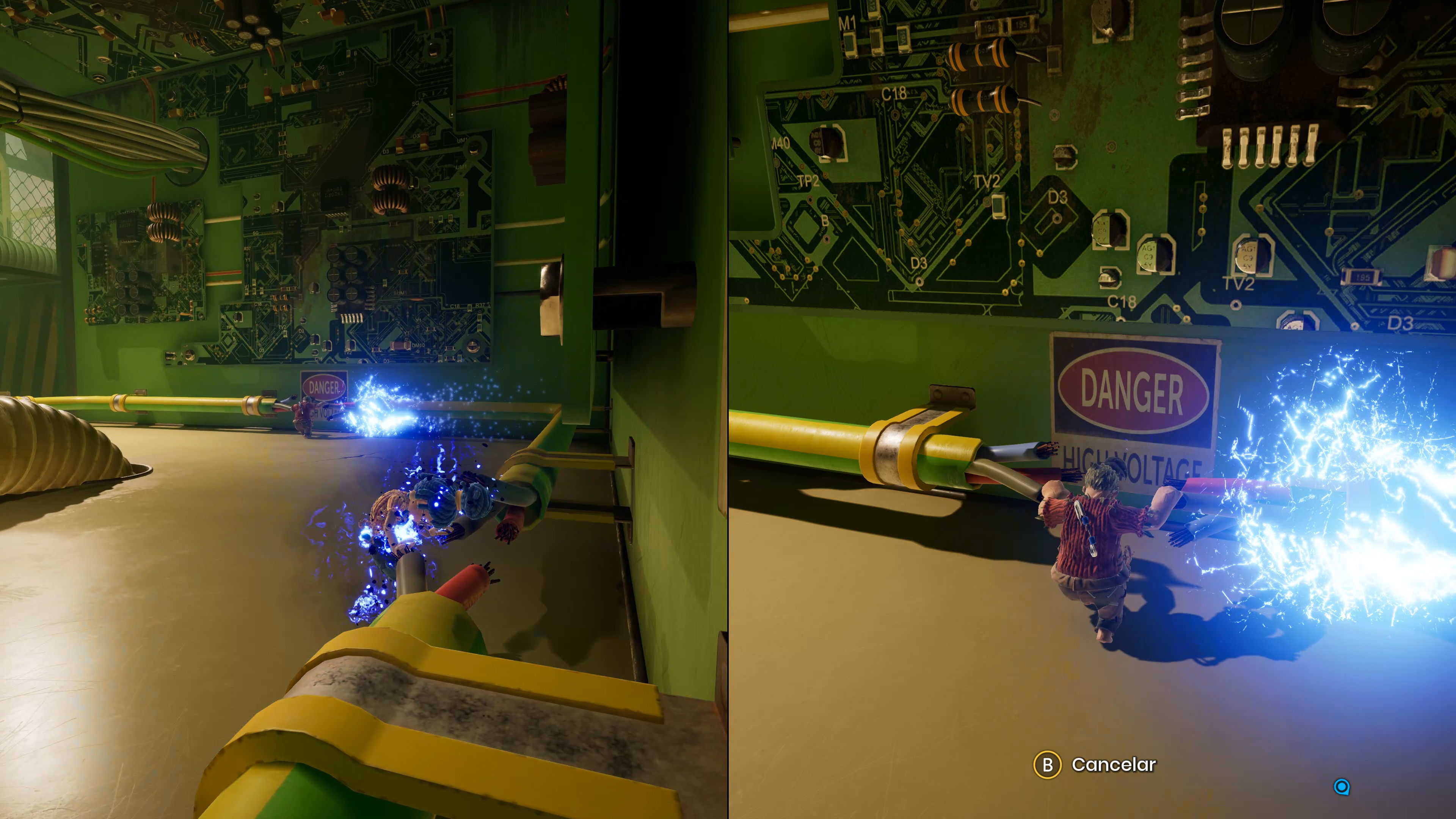 En definitiva, una gran variedad de mecánicas que, como en el mejor diseño de Nintendo, se inician con una situación sencilla que se va complejizando hasta que acaba descartada cuando se le ha sacado jugo. Pero aquí con el plus de que todo está basado en la colaboración, lo que jugando con esa persona en el mismo sofá (como con A Way Out, la experiencia no es tan intensa jugando online) provoca una comunicación constante, risotadas cuando nuestro compañero falla, miraditas acusatorias cuando uno de los dos lleva cinco minutos cayendo en una sección que al otro le parece muy fácil (de momento nos está pareciendo un juego muy facilón, pero nos parece algo positivo en un título así) y en resumen, una jugabilidad colaborativa de verdad.