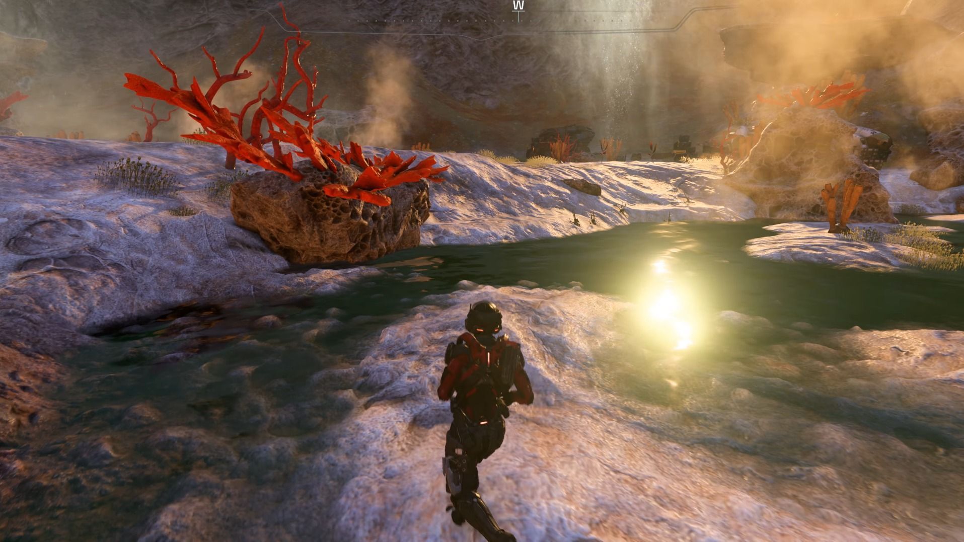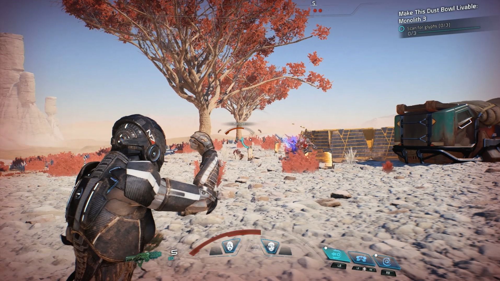 Una vez asumamos el papel de Ryder (en su versión masculina o femenina, según nuestra decisión inicial) aterrizaremos en el planeta Habitat 7. Rápidamente descubriremos que no es un lugar apacible y que nuestra supervivencia será complicada. Adentrándonos en el control, la cámara vuelve a situarse en tercera persona, aunque algo más alejada de lo habitual. Por su parte, los controles, aunque se sienten muy familiares, han sufrido cambios importantes. El más significativo es que contamos con un jetpack que nos permitirá realizar saltos en todas direcciones, algo que será de gran ayuda en la exploración, pero sobre todo durante los combates.