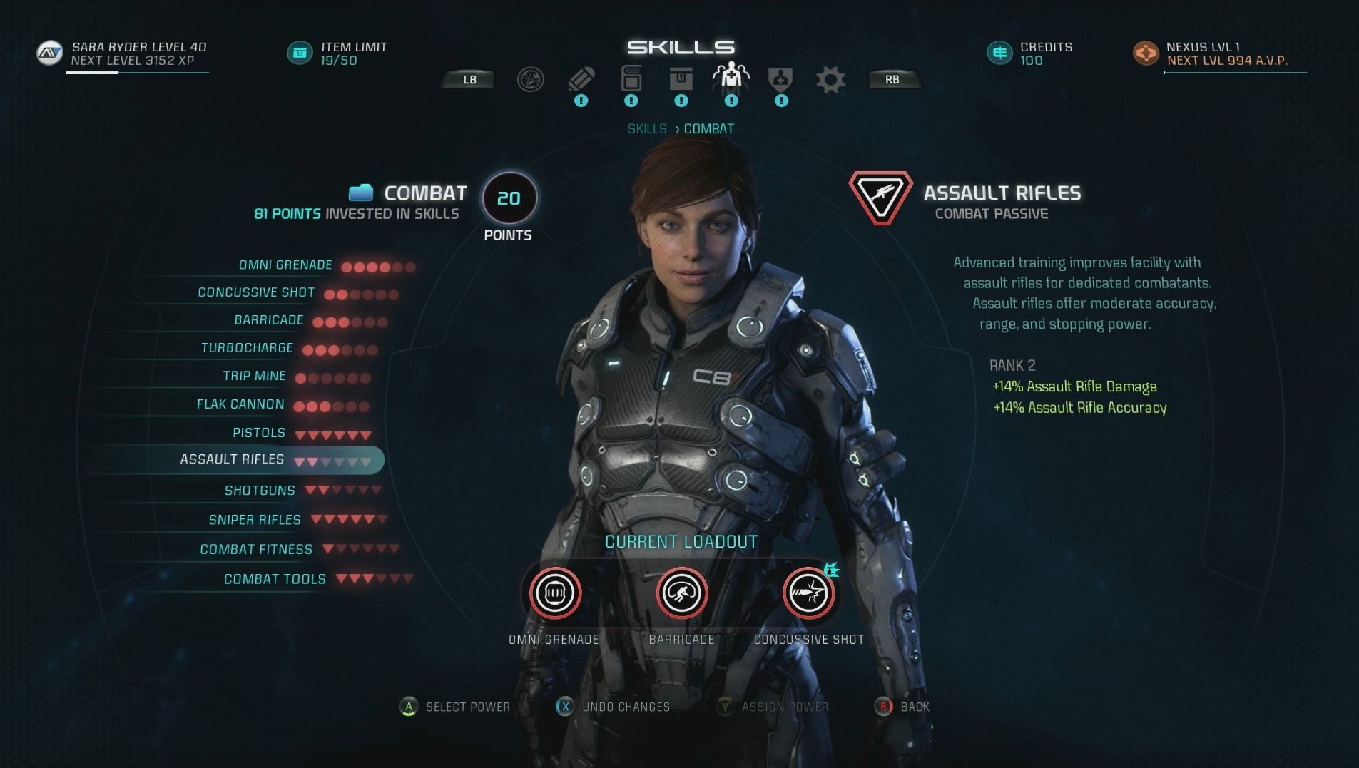 En este sentido, al contrario de lo que sucedía en anteriores entregas, ahora no tendremos que elegir nuestra clase nada más empezar, sino que iremos definiéndola a medida que juguemos. Conseguiremos puntos de habilidad al subir de nivel, que usaremos para desbloquear habilidades de combate, tecnológicas o bióticas. Las de combate se centran en el uso de armas, las bióticas en mejorar nuestros poderes y las tecnológicas en el uso de armamento experimental.