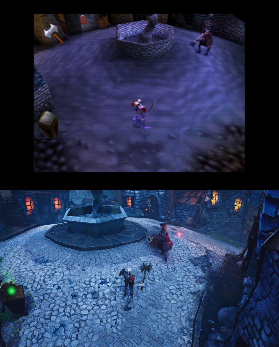 "Por otra parte, debíamos tener en cuenta que la distancia de renderizado ya no se interrumpía desde una niebla negra a escasos metros de Dan y que la relación de aspecto había cambiado de un 4:3 cuadrado a un 16:9 cinematográfico. Esto nos obligó a construir secciones distantes que no existían en el juego original".
