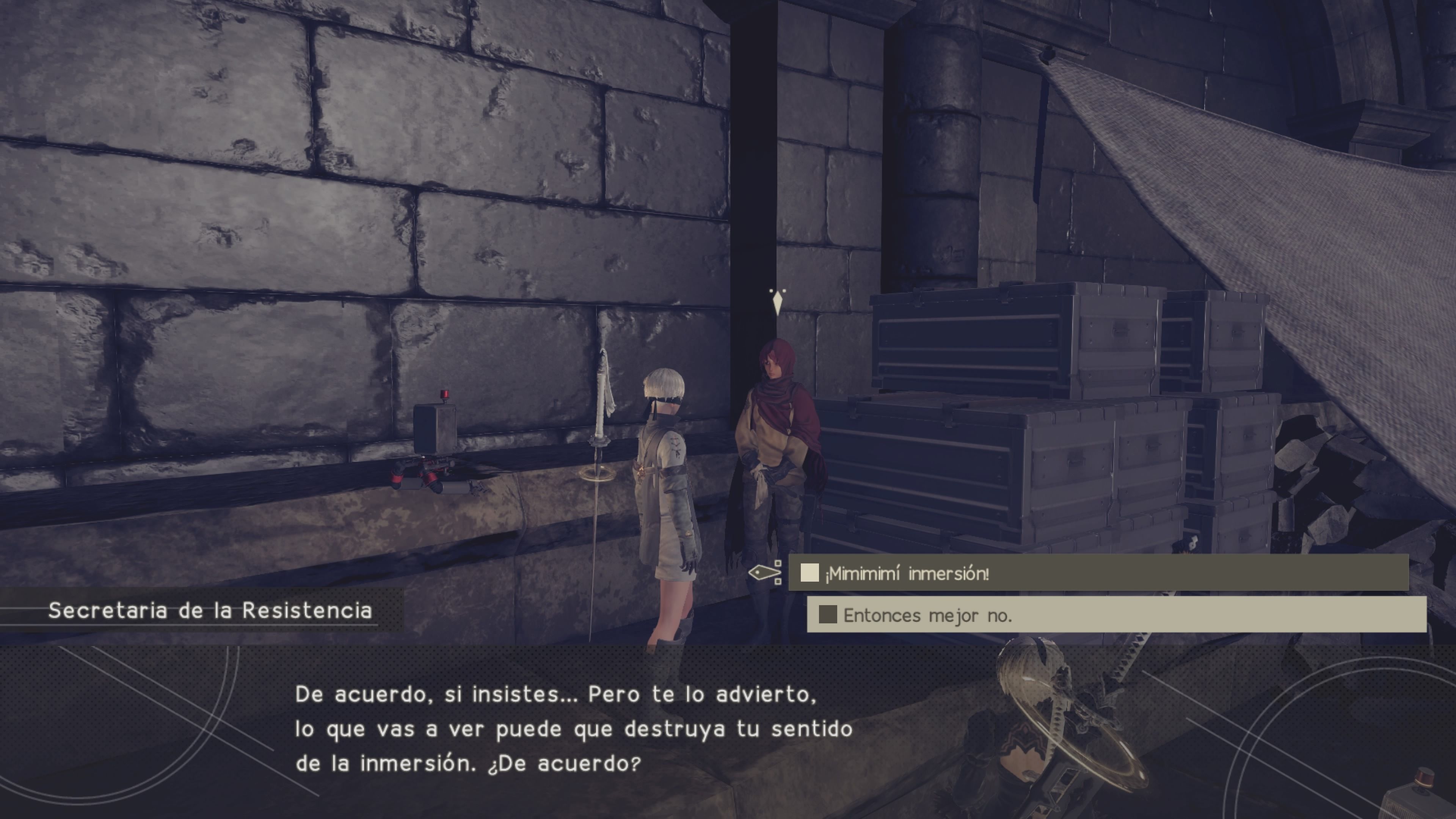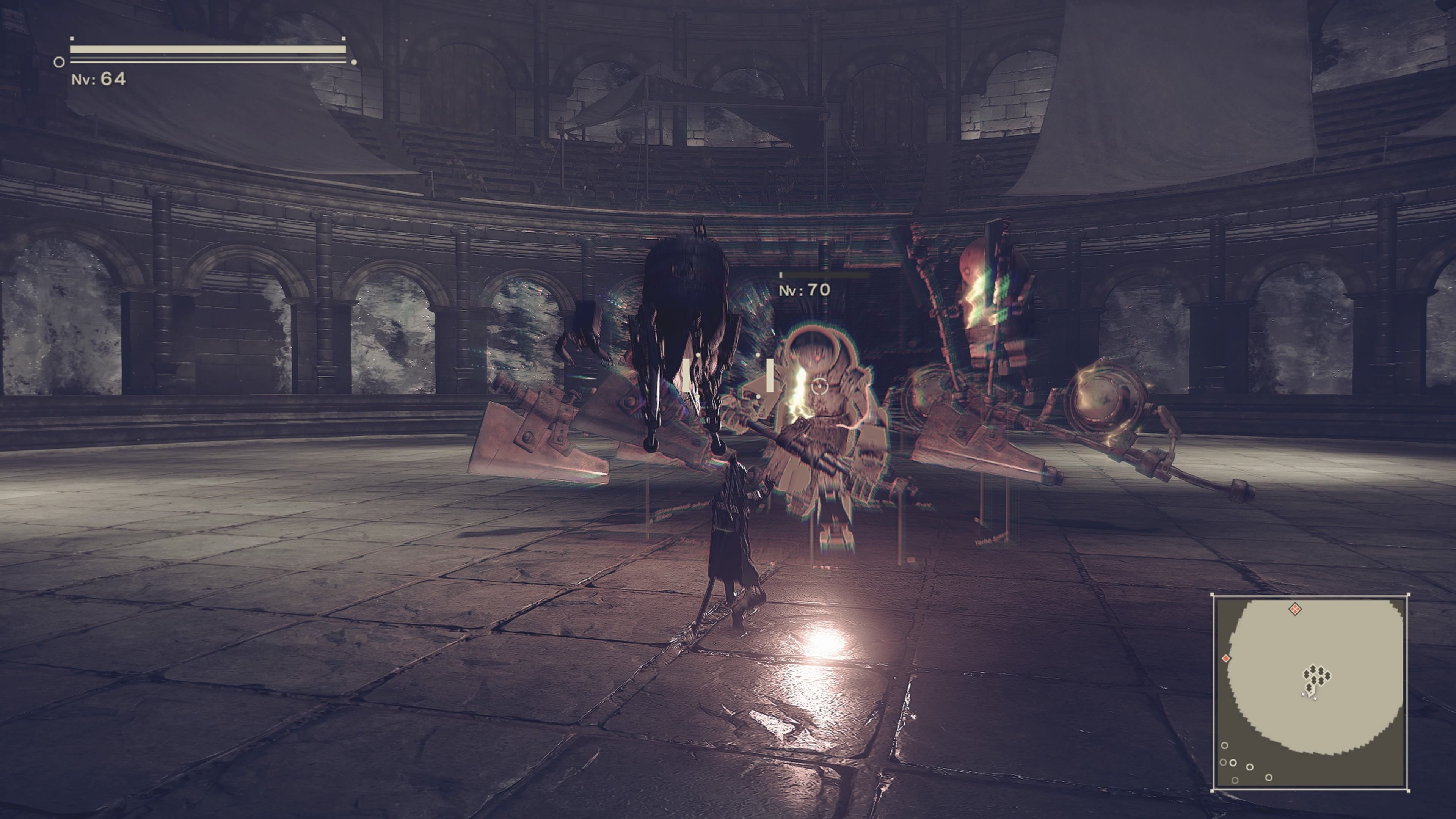 De esta última arena tenemos que destacar lo impactante que resulta la pequeña historia que aquí nos cuentan, con Yoko Taro demostrando una vez más lo bien que sabe usar los recursos narrativos de los videojuegos para enseñarnos las dos caras de la moneda de un conflicto.