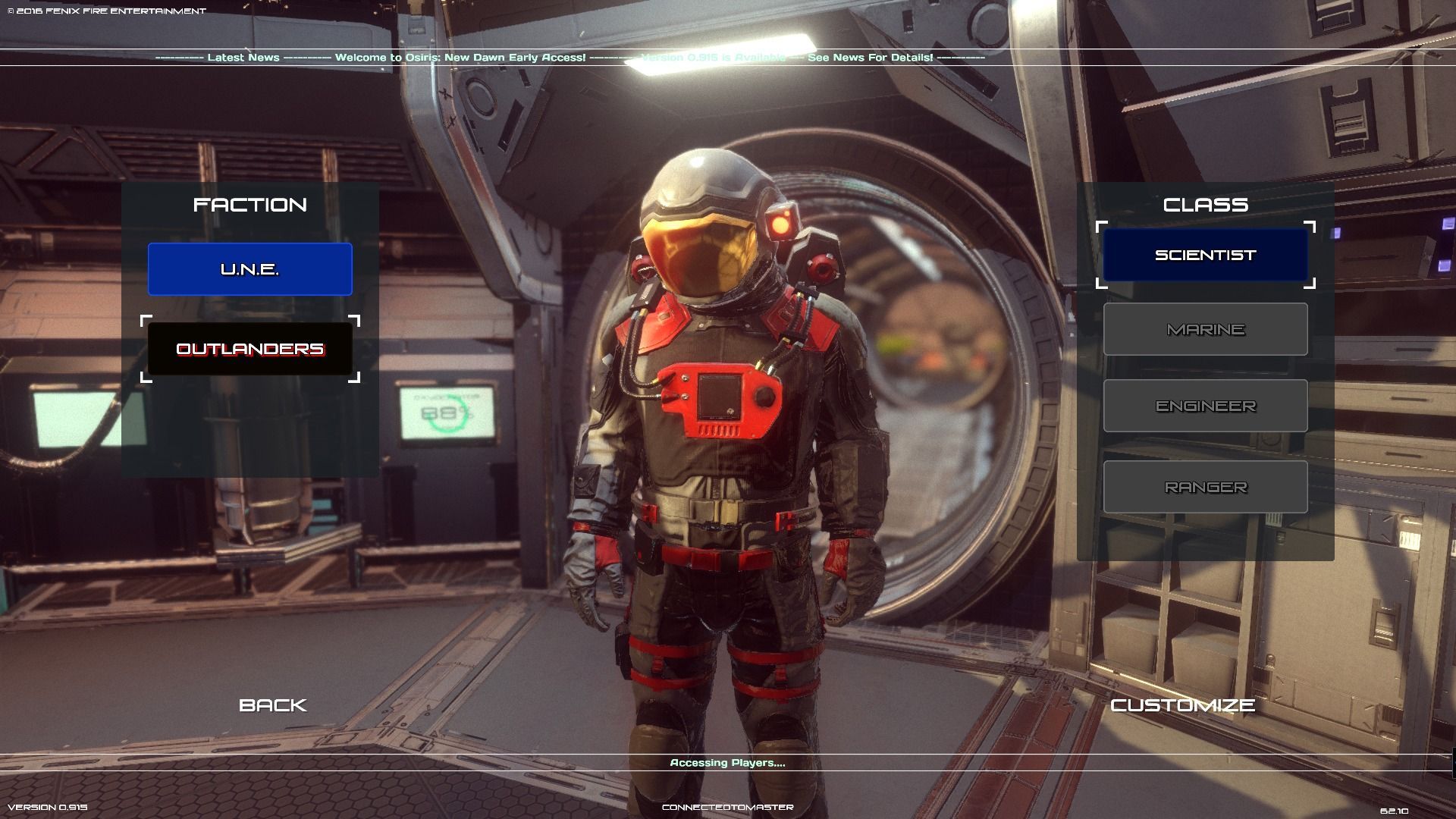 En esta versión Early Access la única clase disponible es Científico, un tipo de personaje orientado al crafteo y al diseño de cohetes. En un futuro, se implementarán clases como Marine, centrado en la acción directa y la lucha contra los aliens; Ingeniero, enfocado a la creación de vehículos y estructuras; y finalmente Ranger, experto explorador que usa tecnología muy avanzada para moverse y descubrir los secretos del planeta. Como dato curioso, se nos permite modificar los colores de nuestro personaje y decidir su nombre.