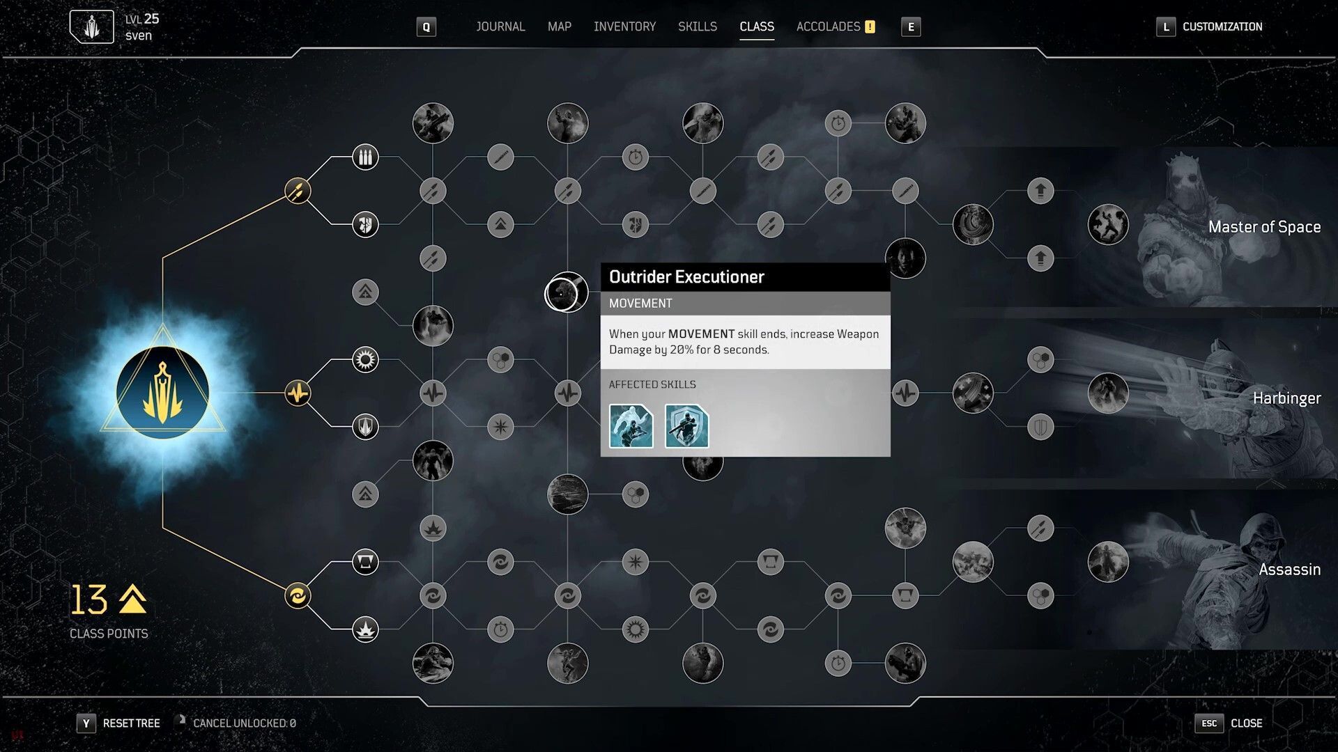 En Outriders habrá cuatro clases, de las que de momento se han desvelado tres: Pyromancer, Devastator y Trickster. Es esta última en la que se ha centrado la parte final de la presentación, un tipo de personaje óptimo para los jugadores a los que les guste poder entrar y salir de los enfrentamientos a corta distancia con rapidez. Como los demás, contará con un enorme árbol de habilidades a su disposición separado en tres ramas (aquí orientadas al movimiento, a maximizar el daño y a actuar como un tanque): en mitad de cualquiera de ellas, tendremos la posibilidad de avanzar un poco en las otras dos gastando los puntos obtenidos al subir de nivel.