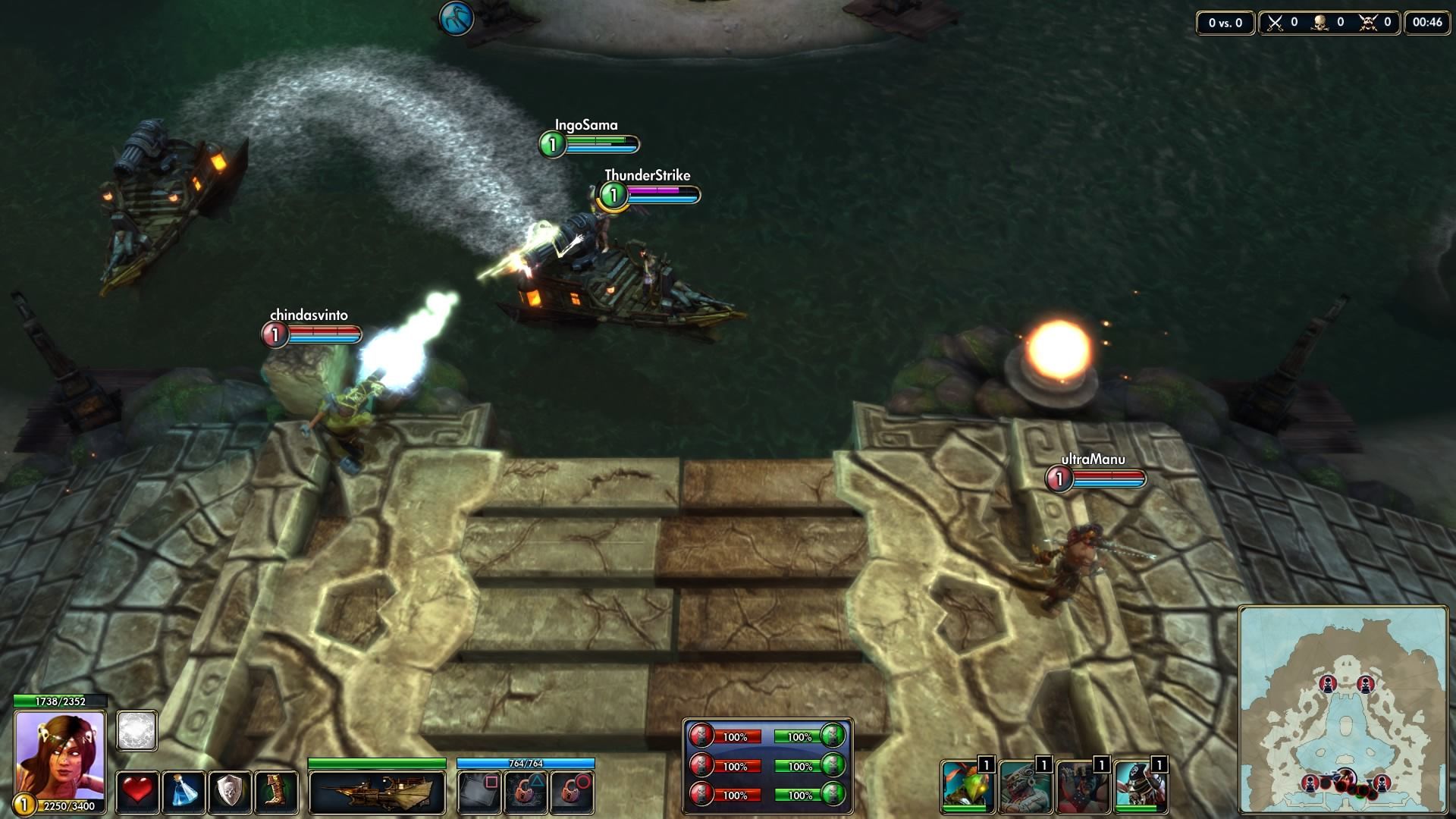 En la sesión de demo vemos dos mapas, uno de 3 vs 3 y otro de 6 contra 6. En este segundo hay dos zonas de totems que hay que defender y, cuando se destruyen ambas en un equipo, aparece una tercera zona en la parte central del mapa, que está llena de islas. En este mapa también aparece un galeón después de un rato. La intención del estudio con esto es concentrar la acción en una misma zona, ya que los escenarios de juego son bastante grandes.