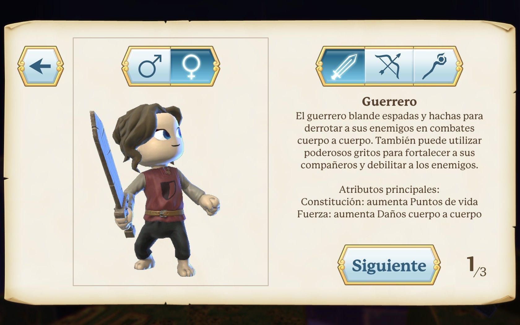Desde este primer momento también personalizas la forma de jugar el personaje, al elegir si es guerrero, guardabosques (con ataque con arco a distancia) o mago. Al terminar con los enemigos consigues puntos de experiencia que sirven para ir especializando a tu personaje asignándolos en seis características diferentes, y también puedes añadirle diferentes destrezas al llegar a determinados niveles el personaje.