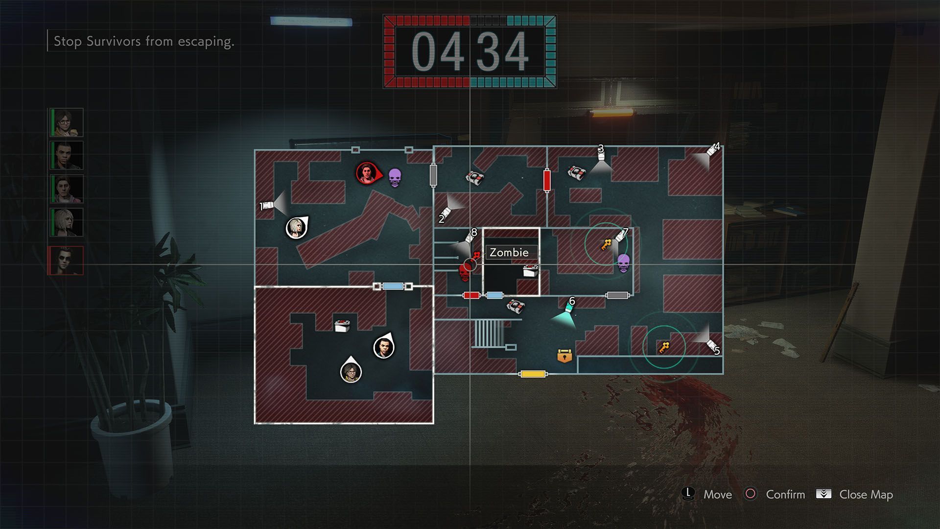 La habilidad y las diferentes estrategias que pueda seguir el quinto jugador pueden cambiar del todo el ritmo de una partida de Project Resistance. El Cerebro ve las diversas salas del lugar desde el punto de vista de las cámaras de seguridad, y puede saltar de una a otra desde el mapa. Cada cámara de seguridad tiene ciertas criaturas que podemos invocar: desde zombis rasos que se arrastran por el suelo a otros que explotan en una nube tóxica (los supervivientes necesitarán una planta azul para curarse el envenenamiento; por cierto, se ha perdido la mezcla de hierbas), pasando por perros y lickers. Además, puede convertir la cámara en una torreta, poner trampas en el suelo y cerrar puertas.