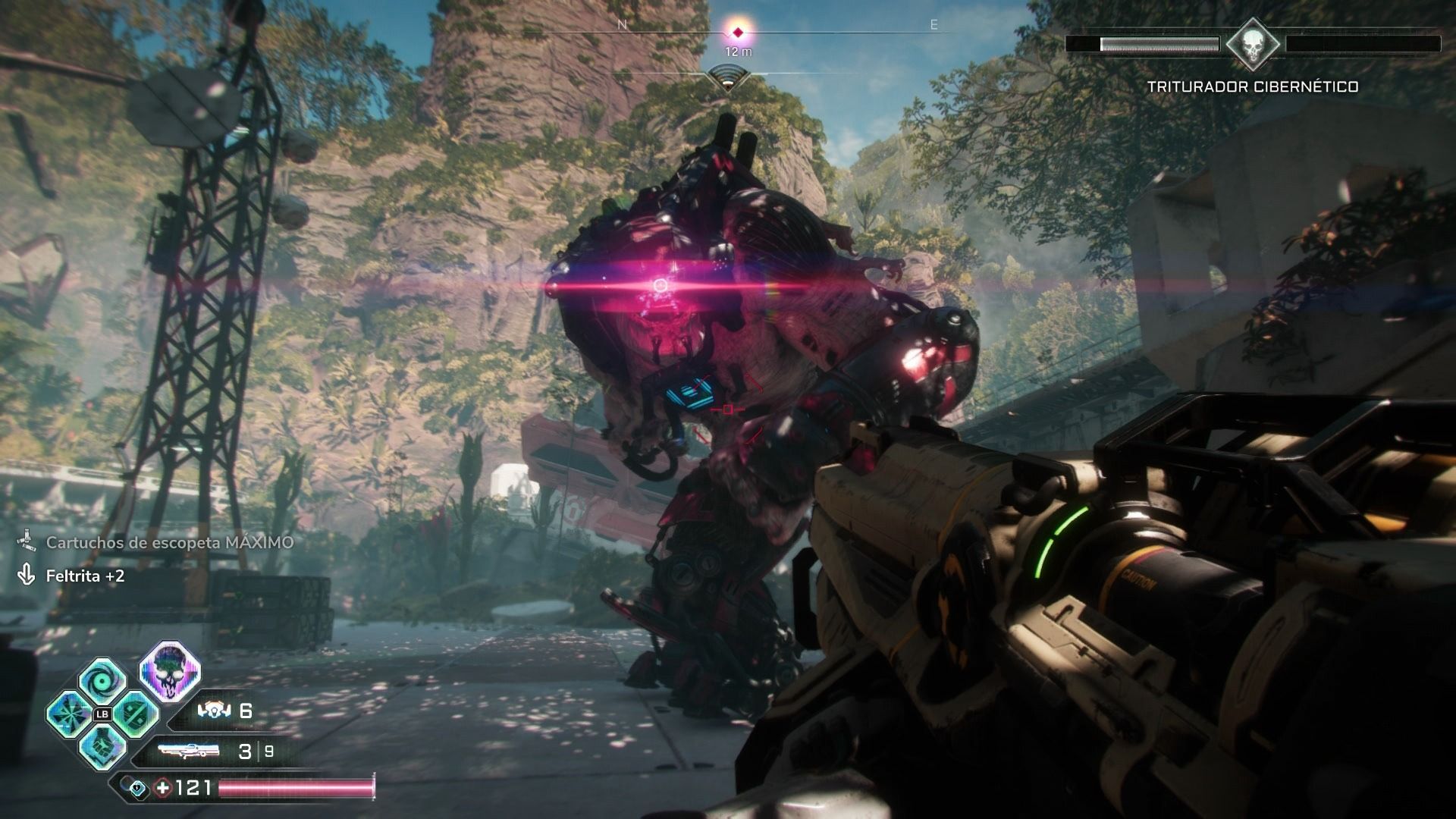 Y luego tenemos los poderes llamados habilidades de nanotritos, los más espectaculares, y que tenemos que encontrar en las arcas que hay repartidas por el amplio mundo, siempre muy bien protegidas por los enemigos, y donde también vamos desbloqueando las diferentes armas.