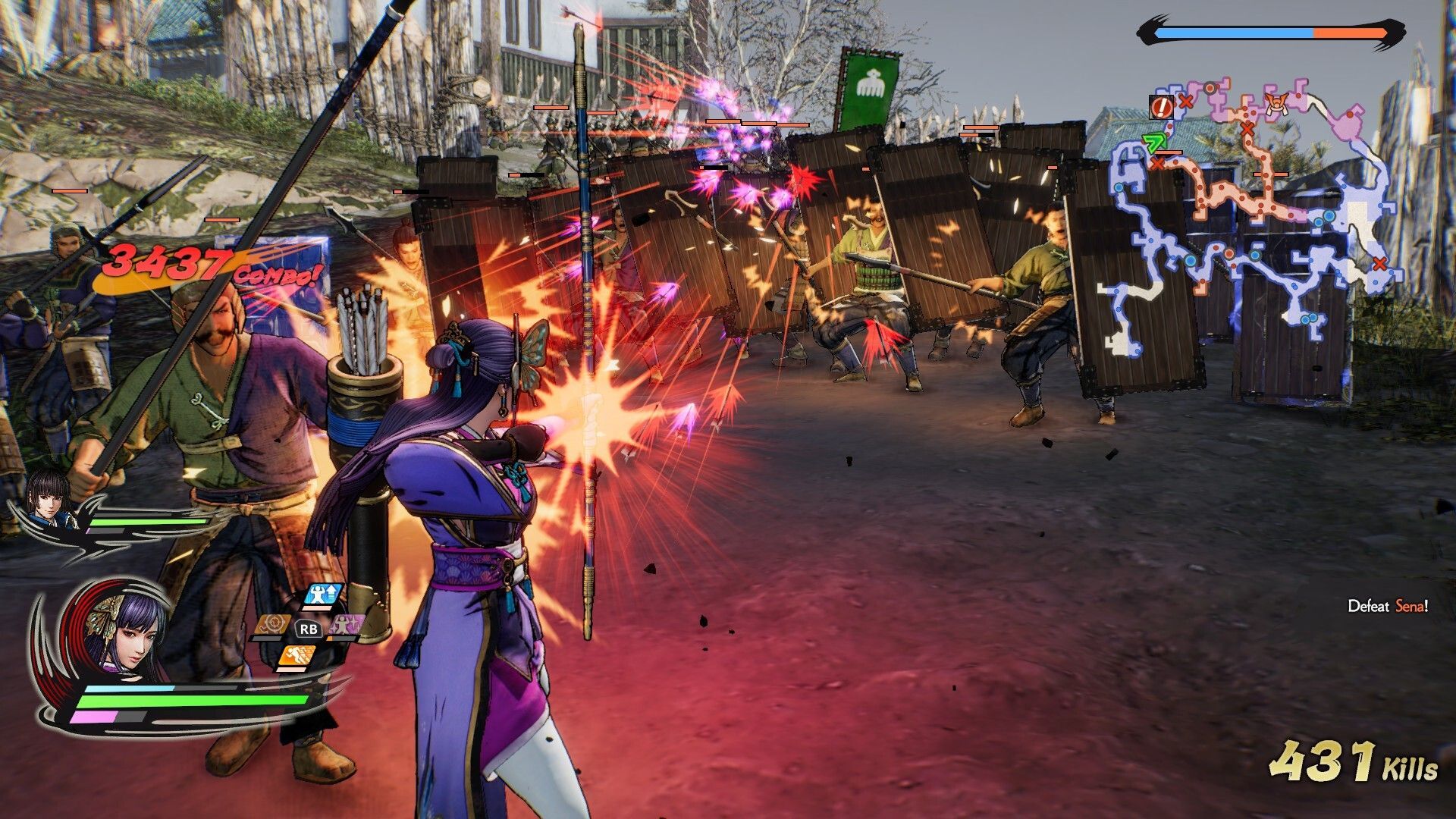 Como siempre, tenemos un sistema de combos basado en dos botones, una barra para lanzar poderosos ataques musou y un medidor de espíritu para entrar en un devastador modo especial que nos convertirá temporalmente en una máquina de picar carne, además de permitirnos desatar nuestra técnica más letal.