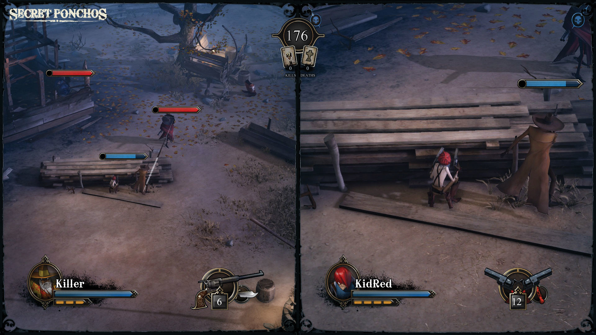 Aunque cuatro forajidos pueden parecer pocos, más un quinto que llegará en las próximas semanas, estos están perfectamente diferenciados y son muy distintos entre sí. The Killer es un veterano de barba blanca que utiliza un revolver de seis balas, que puede disparar de una tacada con un ataque especial. Como arma secundaria cuenta con un cuchillo, que puede lanzar a muy larga distancia, capaz de matarte de un solo impacto si te alcanza. Kid Red es un joven de pelo rojo que utiliza dos pistolas que puede usar en dos modos de disparo distintos: realizando dos disparos a la vez, o con disparos consecutivos, lo que nos permite disparar doce veces seguidas. Como arma secundaria, pueda lanzar una poderosa dinamita, con un gran poder de destrucción.