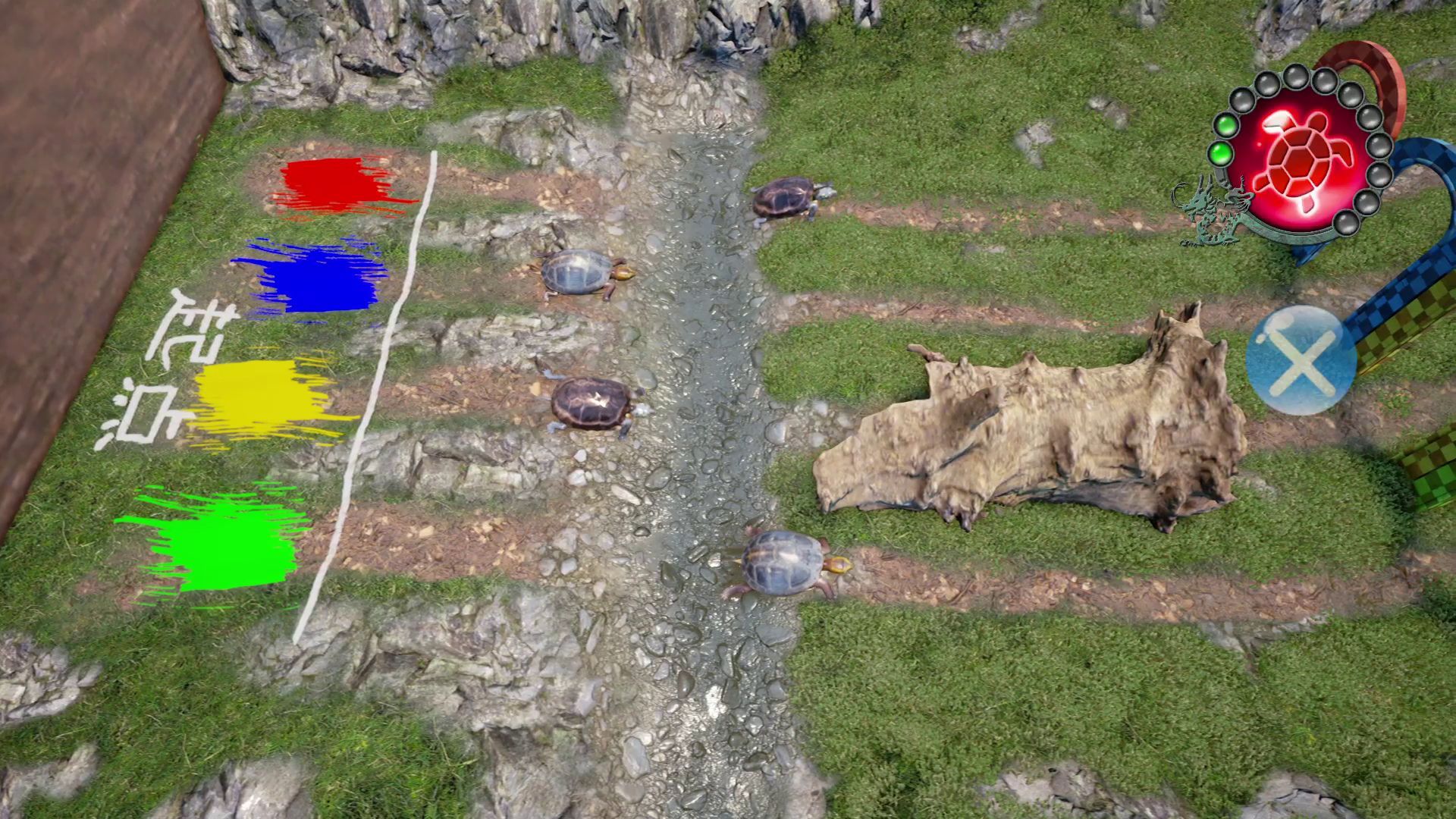 Como no podía ser de otra manera en la saga, entre esos habitantes hay muchos que llevan negocios de juegos de azar. Aquí no hay recreativas ni montacargas con los que mover palés. El puñado de minijuegos en los que hemos participado eran más rudimentarios: competiciones de dados, carreras de tortugas. tirar pelotas dentro de cubetas para ganar premios, tableros verticales en los que una pelota bajaba (con físicas bastante extrañas) hacia casillas que indicaban si habíamos ganado o no, cortar troncos y entrenamientos para fortalecernos físicamente.