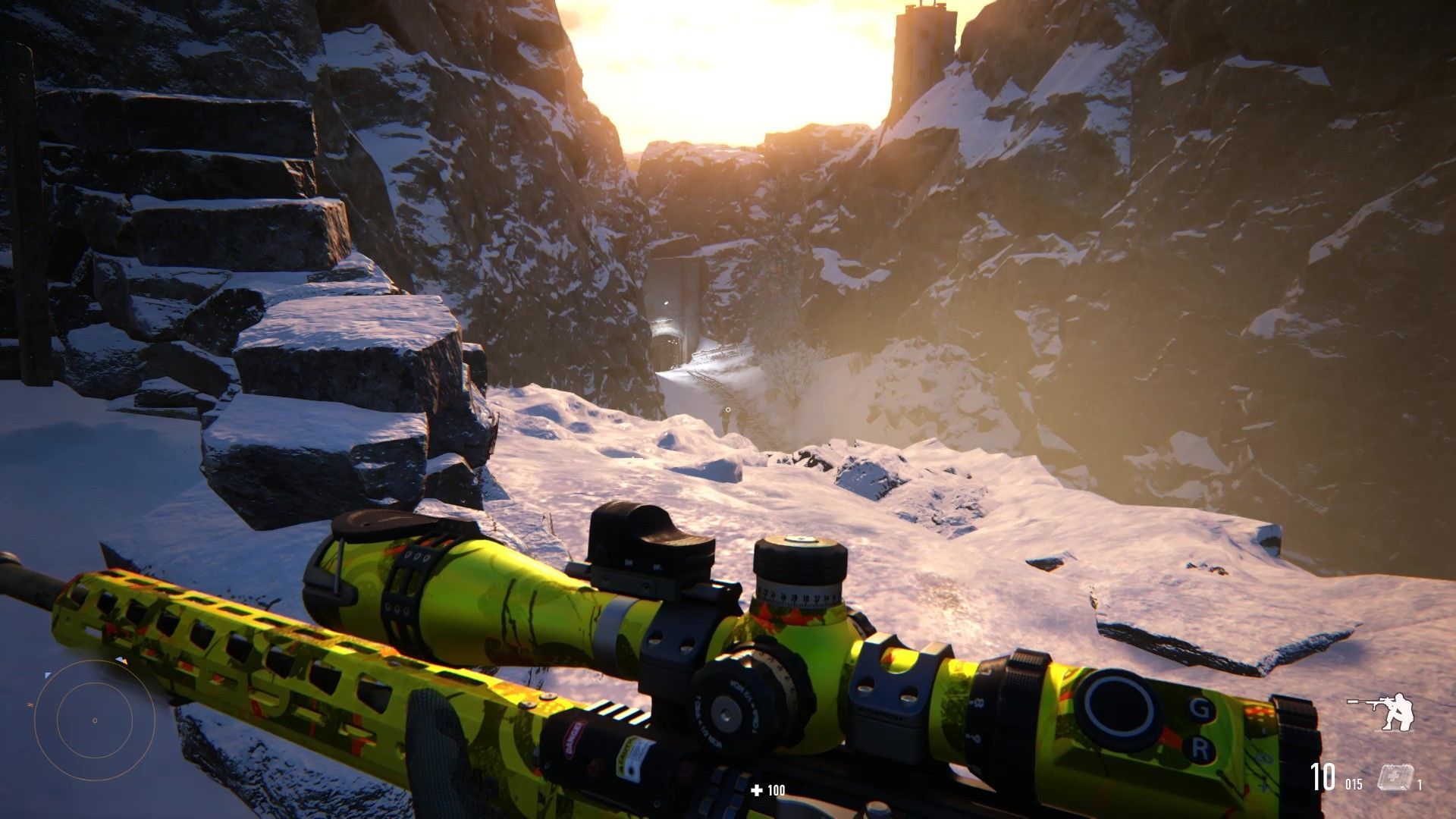 Para ello, nuestro Cazador dispone de una amplia variedad de herramientas, muchas de ellas bastante futuristas. Lo primero que debemos hacer al llegar a una zona plagada de enemigos es sacar los binoculares, con los que podemos marcar a todos los que veamos, incluso si se mueven. A partir de ahí podemos afrontar la situación avanzando a hurtadillas usando una habilidad que rastrea todo lo que hay cerca de nosotros, o tirar hacia la acción más o menos directa: tenemos granadas explosivas y venenosas, trampas que llaman la atención de los guardias, incluso drones, además de amplio abanico de pistolas, fusiles y escopetas. Pero por supuesto, aquí el protagonista es el francotirador.