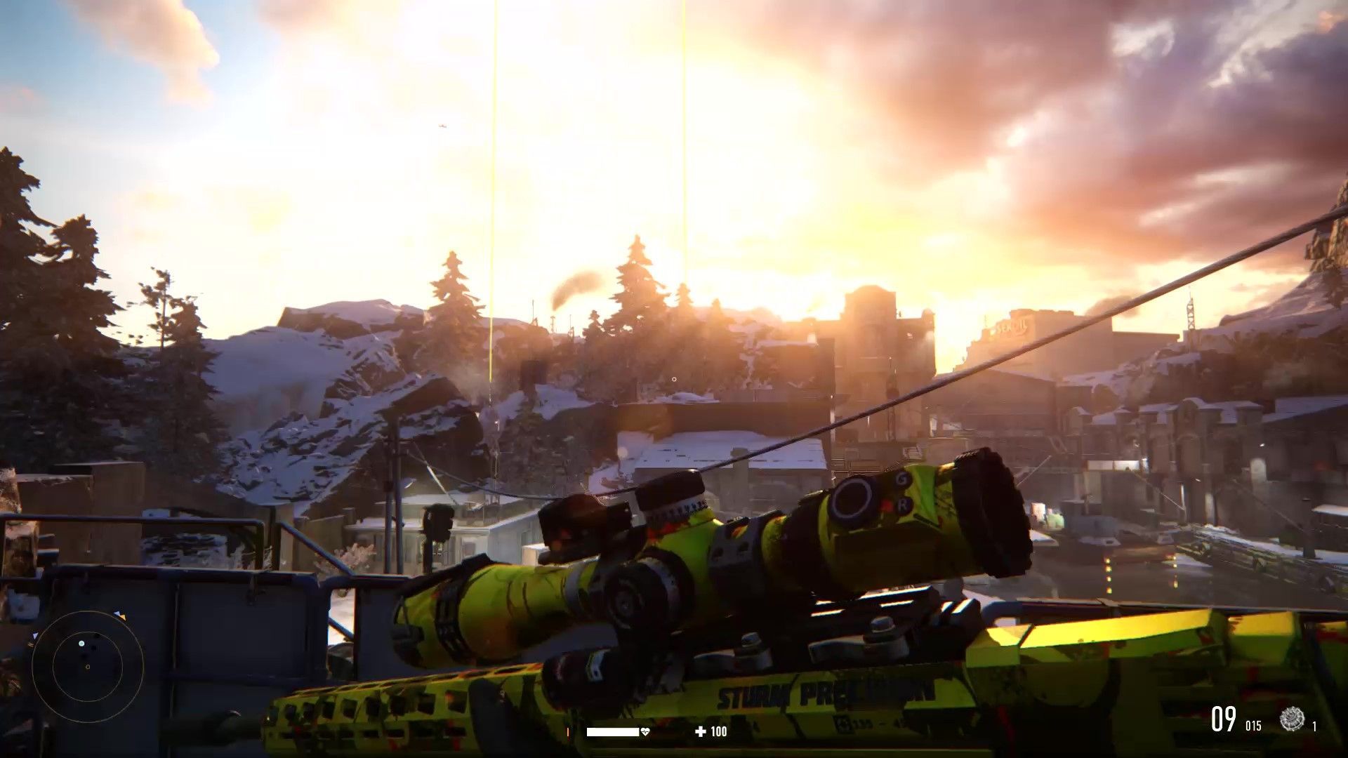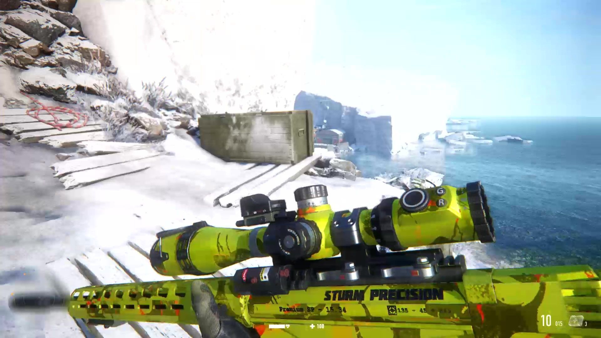 La mirilla del arma estrella se ha mejorado, quizá demasiado. Desde el objetivo vemos la dirección y la velocidad del viento, podemos calibrar el disparo para distintas distancias, se nos indica cómo de lejos está un enemigo si lo hemos marcado previamente, y hasta se nos representa la trayectoria de la bala con una línea. Es muy conveniente, pero una vez nos acostumbramos al sistema, el acabar con decenas de enemigos a distancia es pan comido: apuntamos, vemos la distancia a la a que están, colocamos la mira teniendo en cuenta la trayectoria, pulsamos el botón de aguantar la respiración, y disparamos. Situación resuelta, incluso si se trata de acabar con el objetivo de la misión a medio kilómetro. Además, el arma es versátil porque no solo cuenta con balas normales y otras perforantes, sino que podemos usar municiones especiales para hacer que un enemigo vaya hacia donde hemos disparado o disparar un radar a una pared para que nos marque a todos los enemigos que haya cerca. Y si esto ya parecía una navaja suiza, encima podemos mejorarlo.