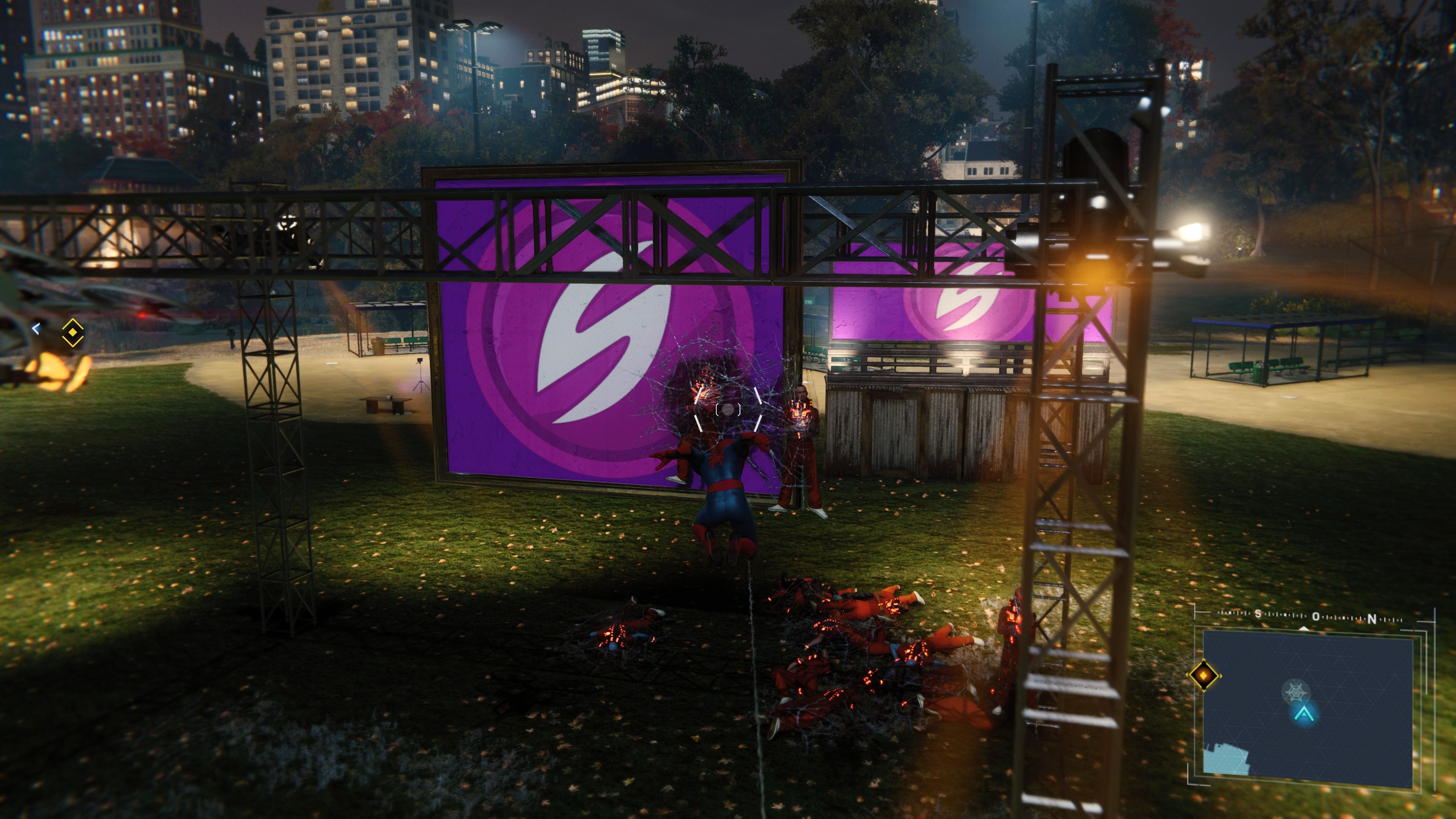 Así, durante nuestra aventura, hemos tenido que derribar enemigos antes de que escapen de una zona, usar el Spider-bot para desactivar bombas a contrarreloj, o realizar pruebas locas preparadas por Screwball, que incluso incluyen una especie de pequeño minijuego. Son sorpresas constantes que agradecemos muchísimo, ya que le dan personalidad al descargable y lo distinguen de la historia principal.