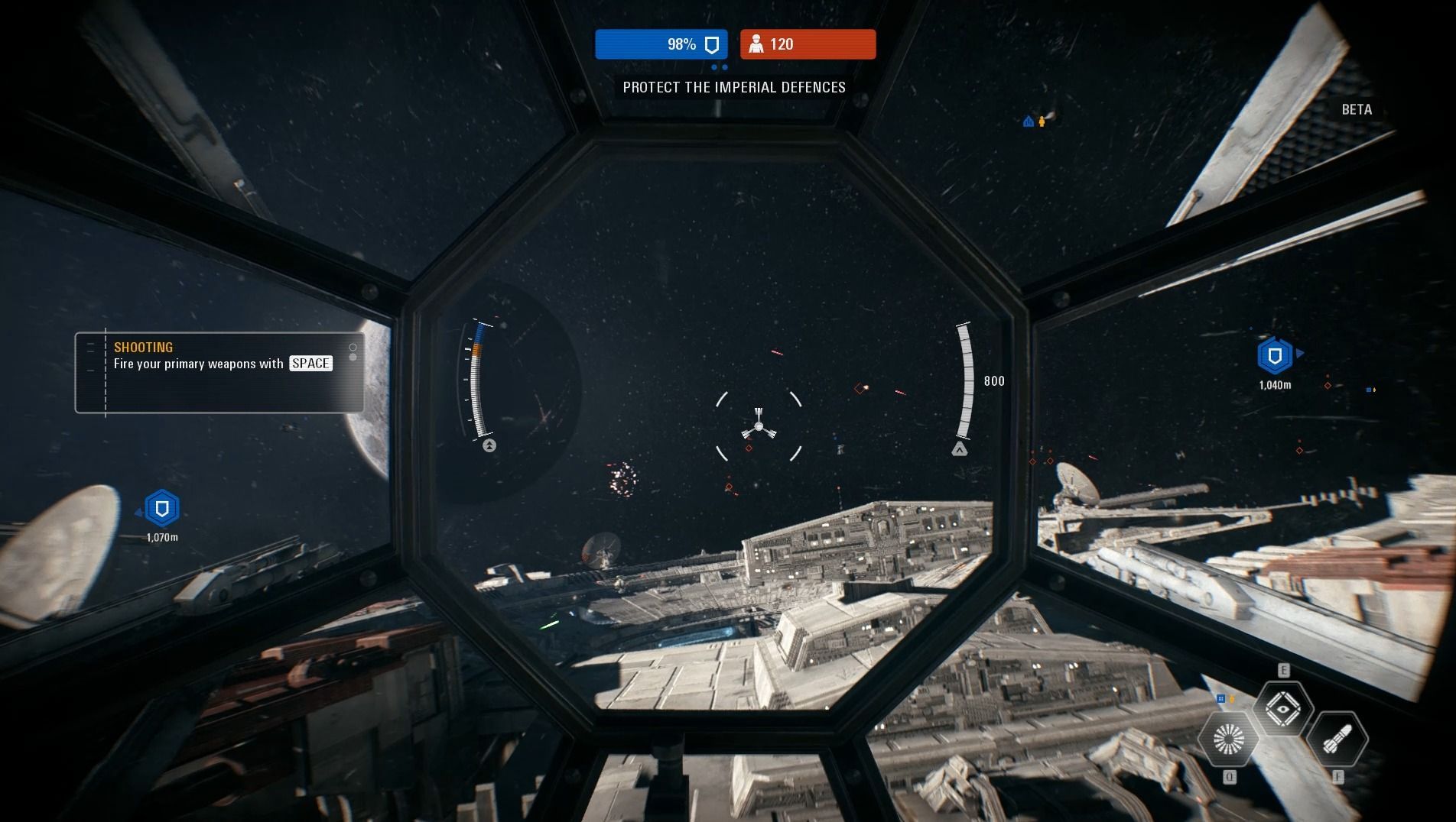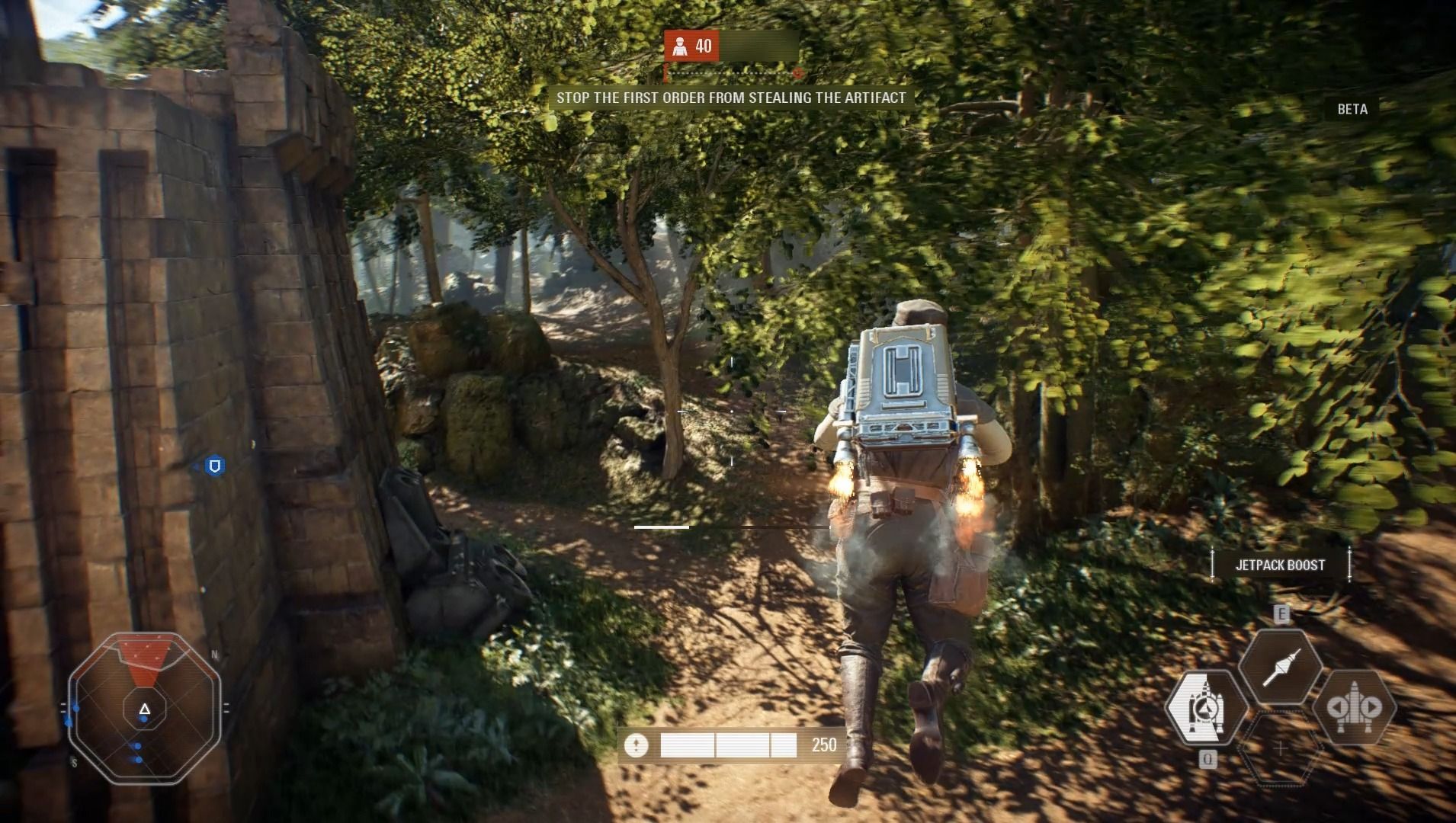 Este estilo de personalización también se aplicará a los héroes. Para esta beta tendremos cuatro disponibles: Boba Fett, Han Solo, Darth Maul y Rey. Cada uno de ellos tendrá tres ranuras de habilidad disponibles, pudiendo inicialmente usar una, y desbloqueando las restantes a medida que subamos de nivel. En este caso solo podremos modificar las ranuras con Cartas de Impulso, pudiendo también subir de nivel cada habilidad. Por último, este mismo sistema de cartas es aplicable a los vehículos aéreos que utilizaremos en las batallas espaciales. Además, para esta beta contaremos con cuatro naves especiales: el Halcón Milenario de Han Solo, el Esclavo I de Boba Fett, la Cimitarra de Darth Maul y Negro Uno de Poe Dameron, aunque en la versión final del juego este número se ampliará sustancialmente con vehículos provenientes de las distintas generaciones de la saga.
