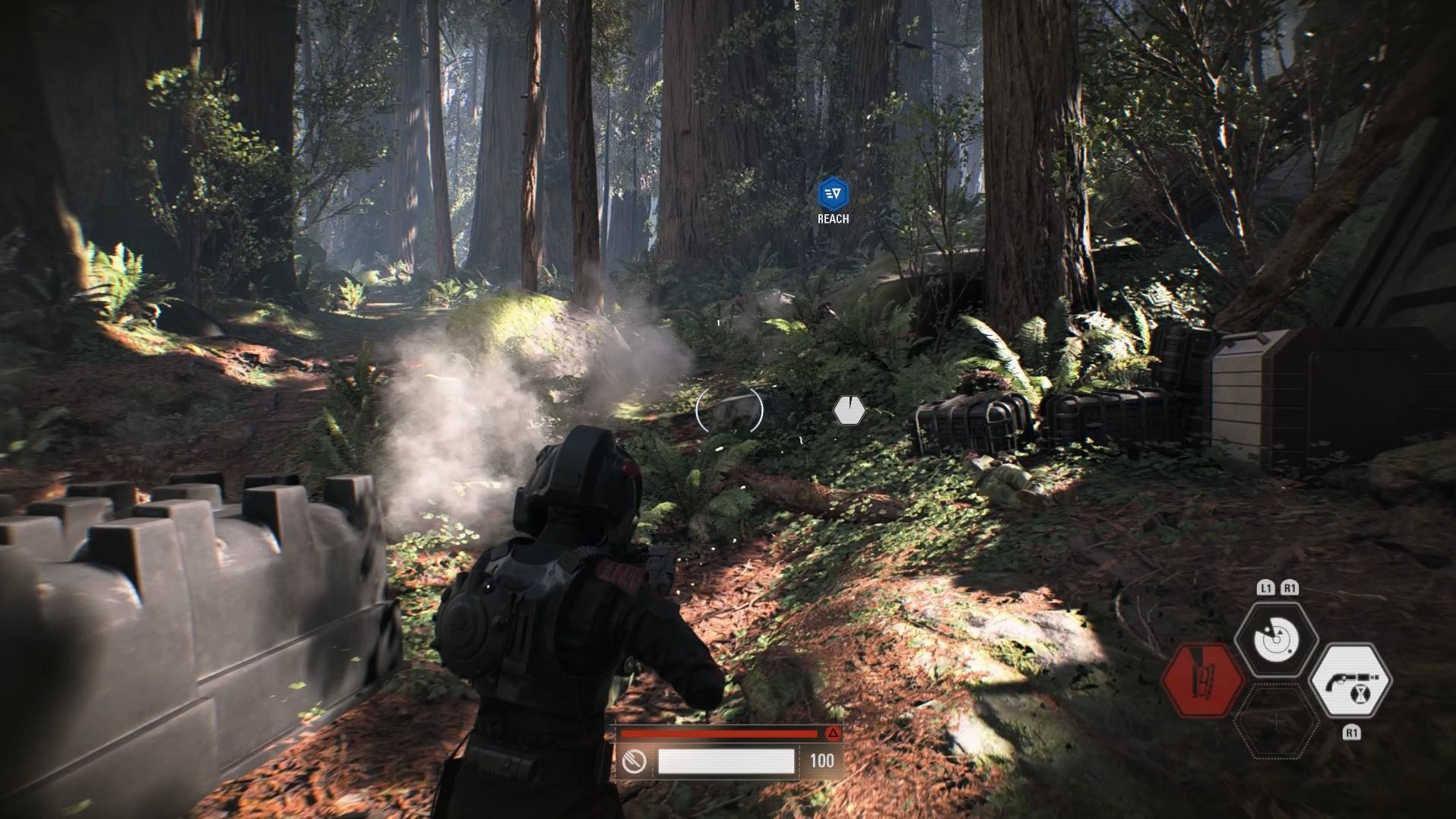 La segunda fase que hemos completado ha sido dentro del planeta Endor, justo después de la destrucción de la Estrella de la Muerte. Aquí, acompañados por otros soldados imperiales, nuestro objetivo será escapar del planeta y volver a la base espacial para recibir nuevas órdenes. Para poder huir tendremos que enfrentarnos al ejército rebelde, un enfoque narrativo poco explorado y que, aunque al principio pueda parecernos raro, acaba ofreciendo un punto de vista muy interesante del conflicto.