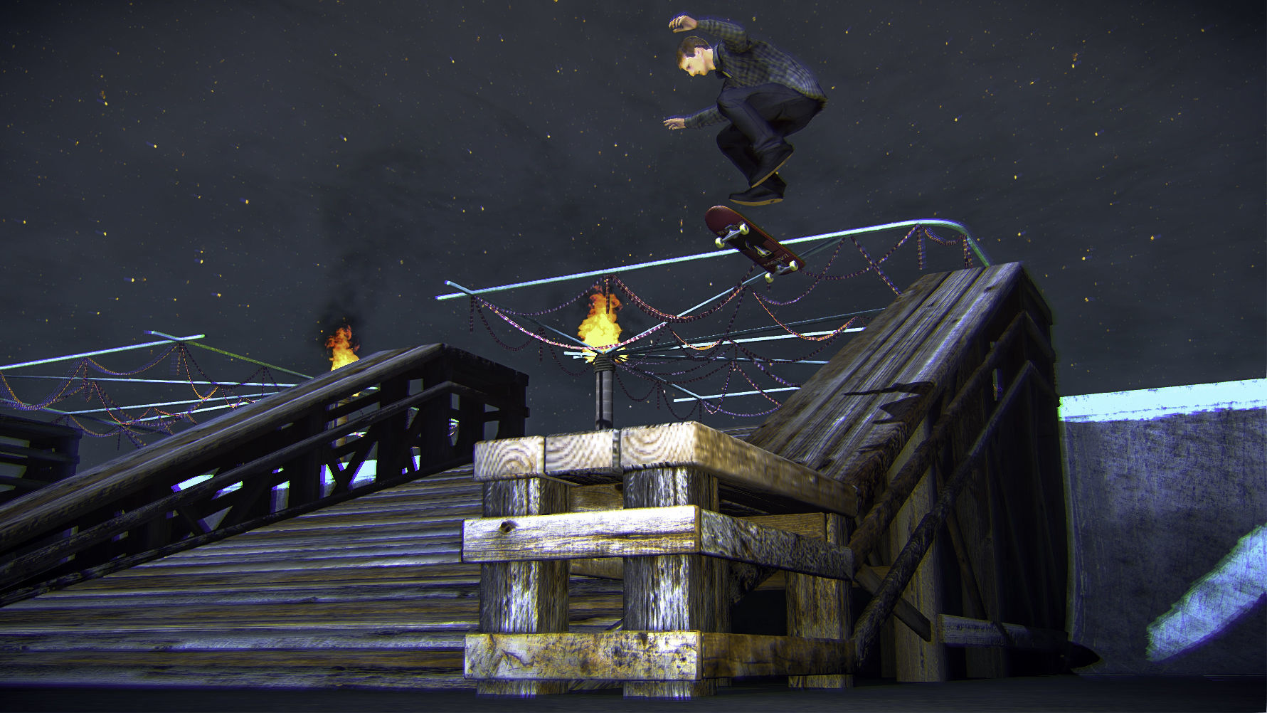 El apartado gráfico, como veis en las imágenes, no se ve tan rudimentario en directo, pero sí que sigue notándose bastante pobre para la época. Funciona a 1080p y a 60 imágenes por segundo –al menos la versión de PlayStation 4, que es la que hemos probado–, y tiene algunos detalles como expresiones faciales para los skaters, y si bien cumple su función, visualmente se perfila como un título muy justito. Nos queda, eso sí, fe en la banda sonora, sobre la que los responsables del juego no han querido soltar prenda, pero con la que prometen no decepcionar.